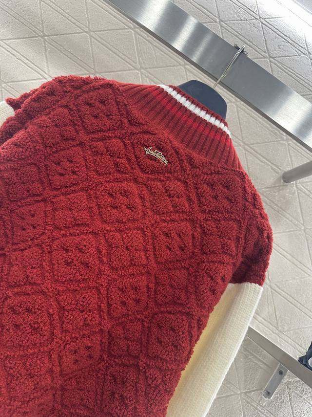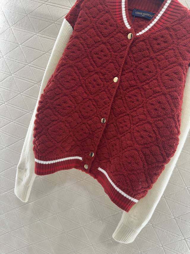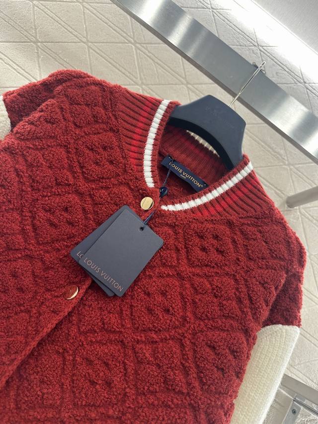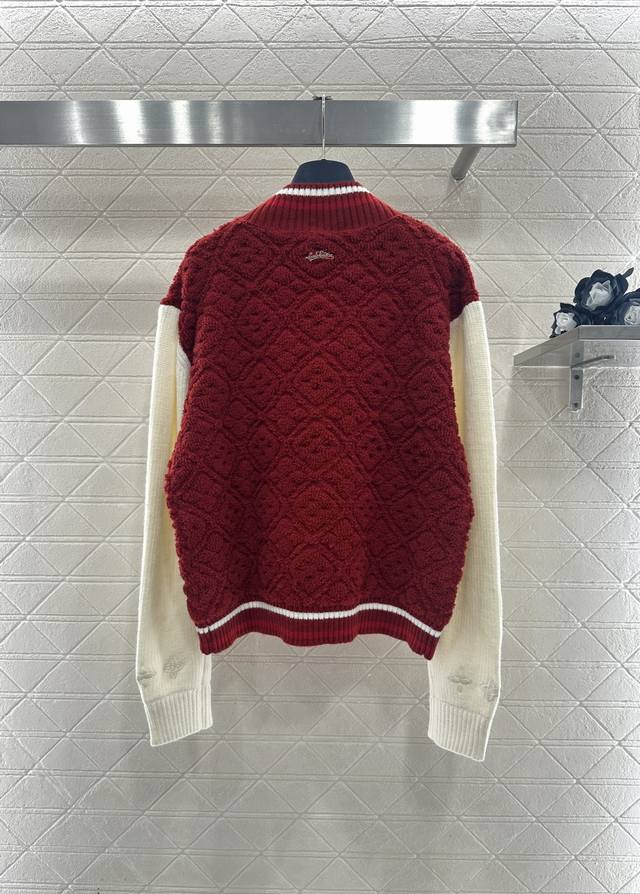 Louis Vuitto*2025 New Arrival Ddd Jacquard Knit Zipper Baseball Color-Block Jacket Ddd Ski Series #Custom Yb wool yarn, jacquard finish for a three-dimensional textured look, baseball jacket silhouette, snap-button closure, elastic ribbed collar and hem for a tapered finish. The overall style is sophisticated yet casual. The torso is adorned with embossed four-leaf clover jacquard details, while the sleeves feature contrasting colors for a fashionable touch. The embossed four-leaf clover texture on the cuffs matches the logo design on the back collar. The stretch fabric offers greater comfort and enhances the brand's stylish look. Custom fabrics and accessories, please ensure you choose the high-quality version. DDD