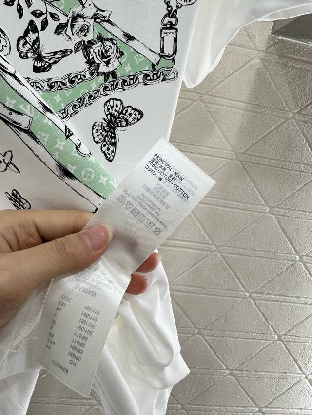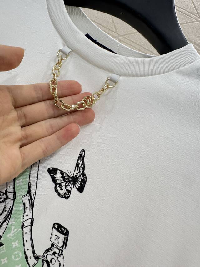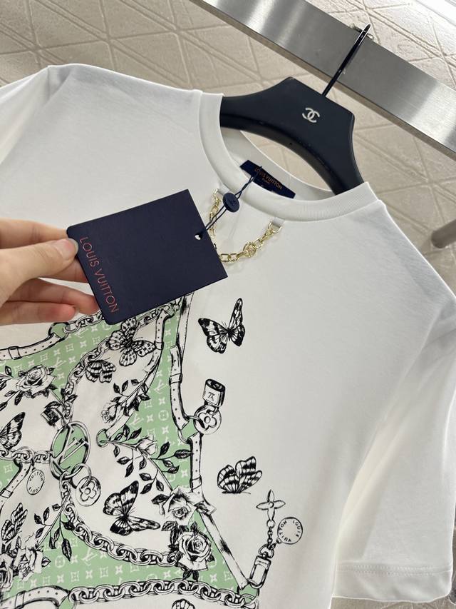 Custom Yb Twill Cotton Fabric Breathable Comfortable Textured Regular Short Sleeve T-shirt Cut to Reflect the Brand's Style Made of Heavyweight Cotton with a Slight Stretch for a Slimming Effect The Neckline is Finished with a Metallic Lettering Chain and Tonal Threaded Trim as a Design Highlight Centered by the Iconic Four-Leaf Clover Logo Surrounding the Lettering Logo in Three-Dimensional Style. Illustrated Floral and Butterfly Patterns and Other Creative and Artistic Designs Embody the Brand's Sophistication and Youthful Aura, Elevating the Look Whether Worn Alone or Underwear, Fashionable Custom Fabrics and Accessories Look for the High-End Version in Two Colors.