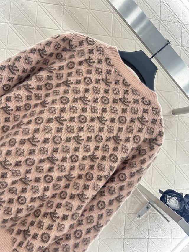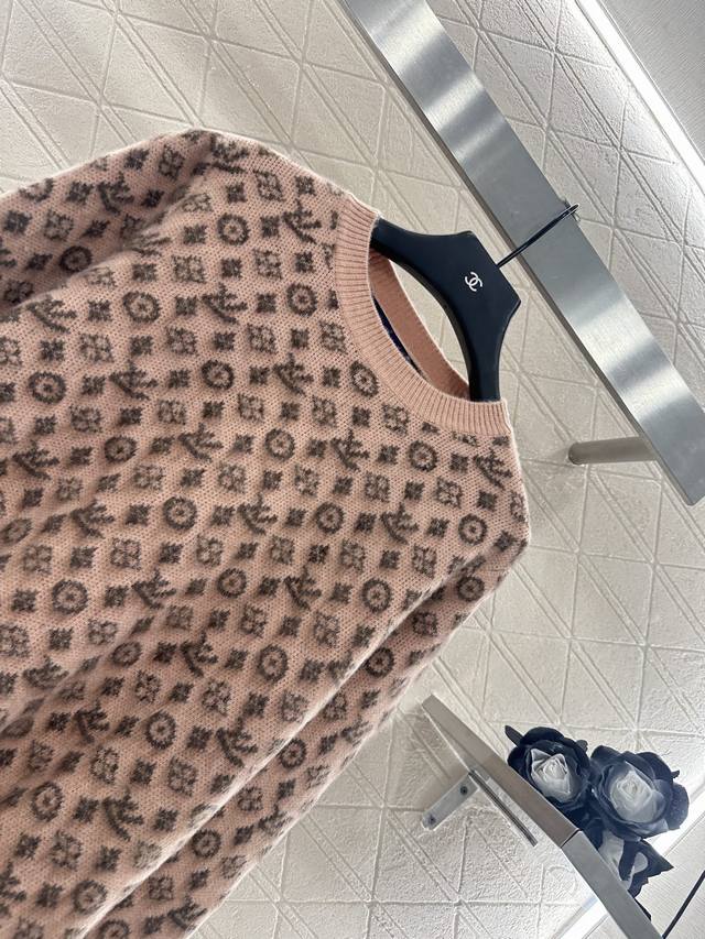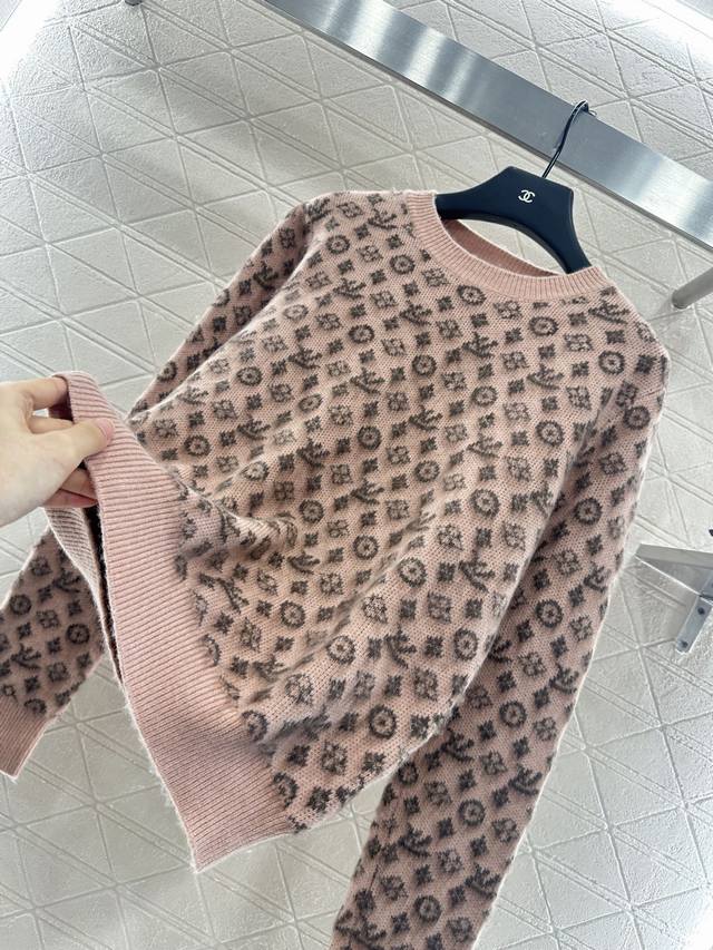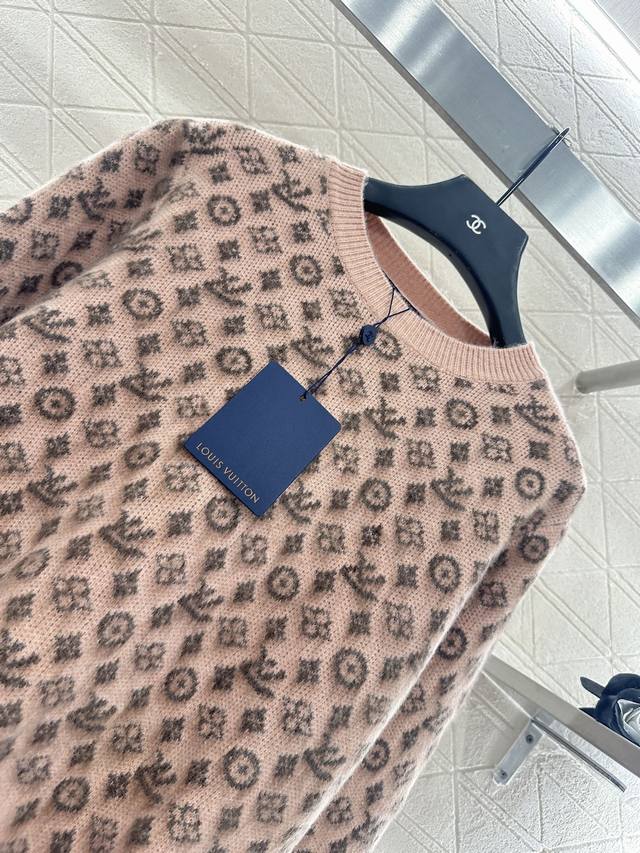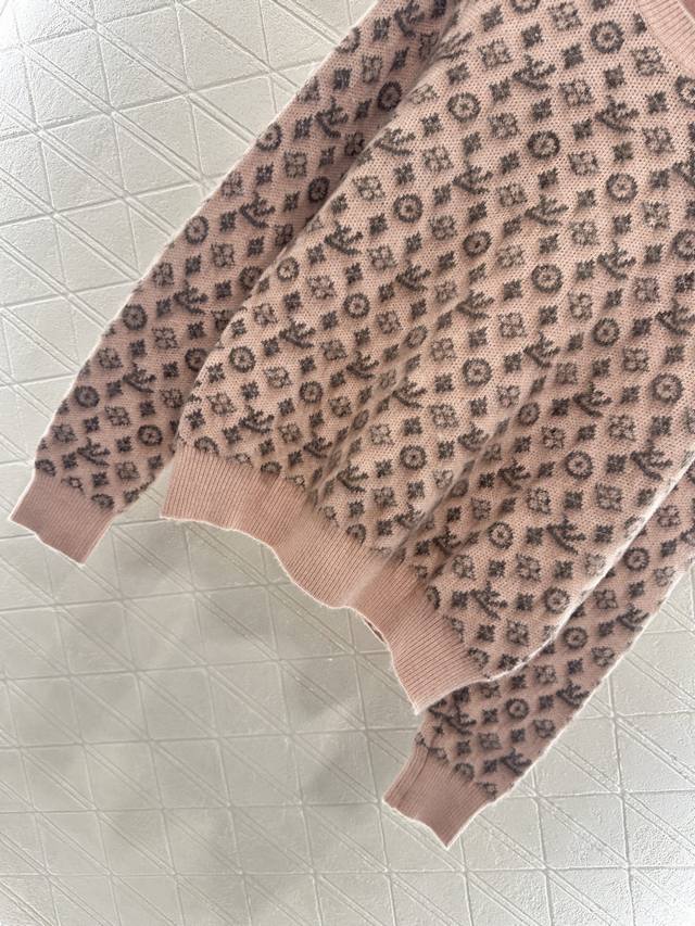 Custom Yb mohair wool yarn for a refined and comfortable fit. The round neck knit pullover sweater features an allover four-leaf clover logo and jacquard lettering, showcasing the brand's signature sensibility. The tonal hems create a striking contrast. The stretchy fabric hugs the body for a flattering effect. This versatile style is versatile for all ages and skin tones, and offers a relaxed fit. The custom-made fabric and accessories are available in two colors.