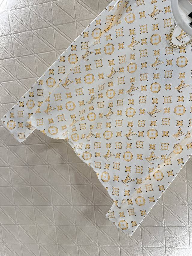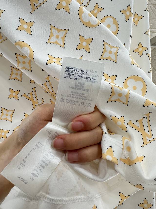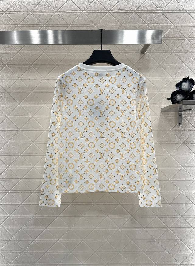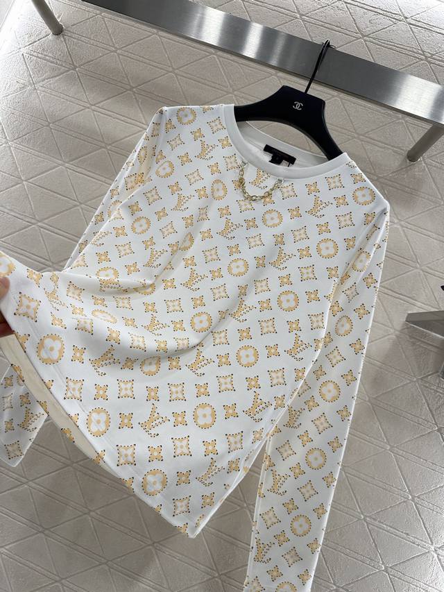 Custom Yb twill cotton material, breathable and comfortable, with a rich texture. Regular long-sleeved top cut to highlight the brand's style. Made of heavyweight cotton with a slight stretch for a slimming effect. The neckline features a metal lettering chain. Tonal threaded edging is a design highlight. The all-over four-leaf clover print and broken-point crochet hems create a youthful vibe. It looks stunning worn alone or as an inner layer. Stylish and custom-made fabrics and accessories are available. Look for the higher-end version.