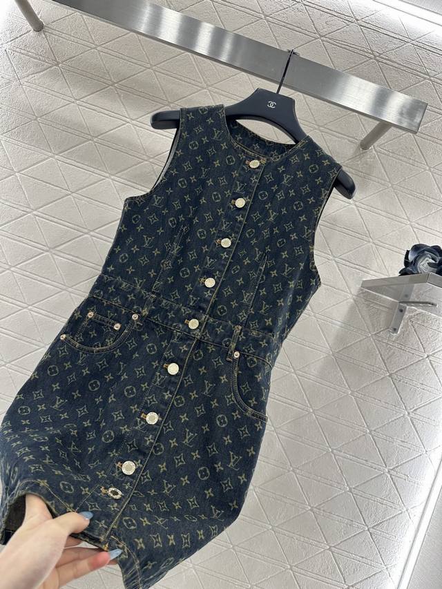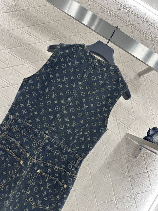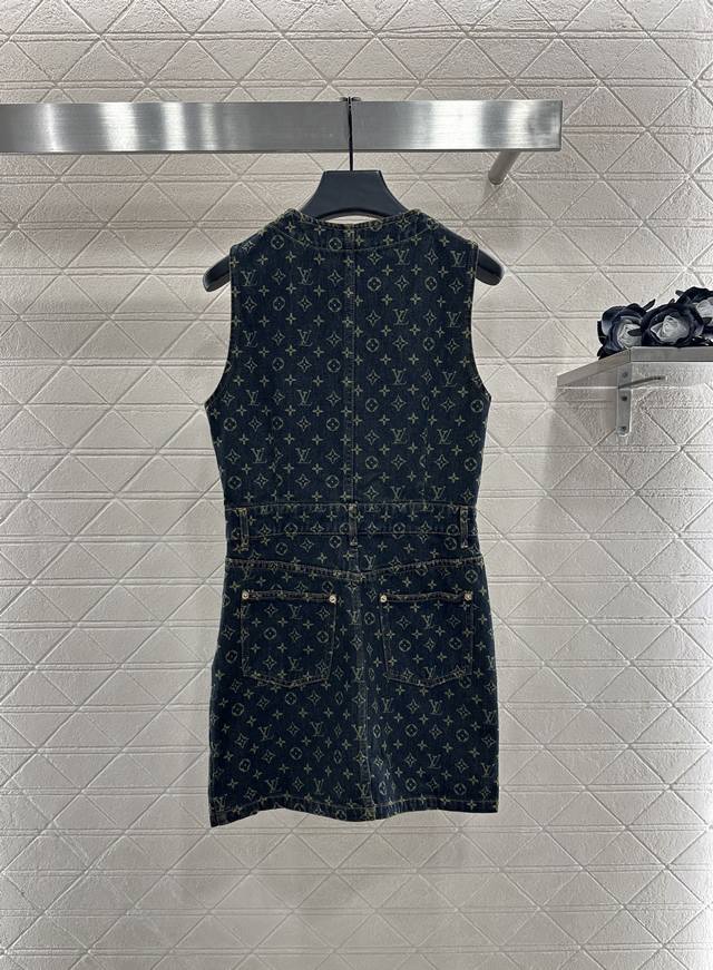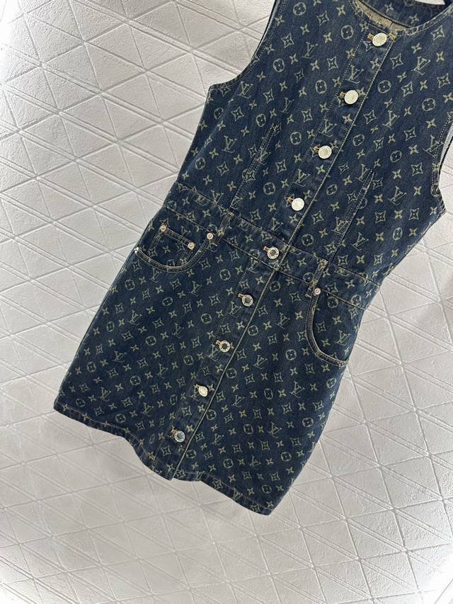 Custom Yb twill cotton denim, featuring a refined texture, a standout feel, and a comfortable fit. This vest dress design utilizes tailoring and details to enhance its sophistication. The all-over dark blue denim base is embellished with laser-cut four-leaf clover lettering, highlighting the brand's signature style and creating a fashionable, individual, and creative look. The cinched waist creates a layered look while effortlessly framing the figure. The mid-length hem is flattering, creating a stylish and fashionable look. For custom fabrics and accessories, look for the higher-end version.