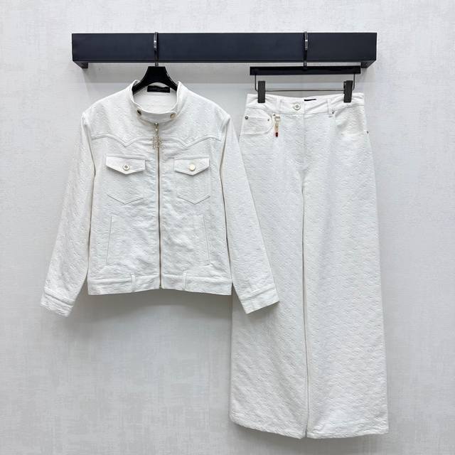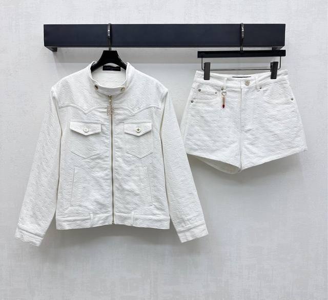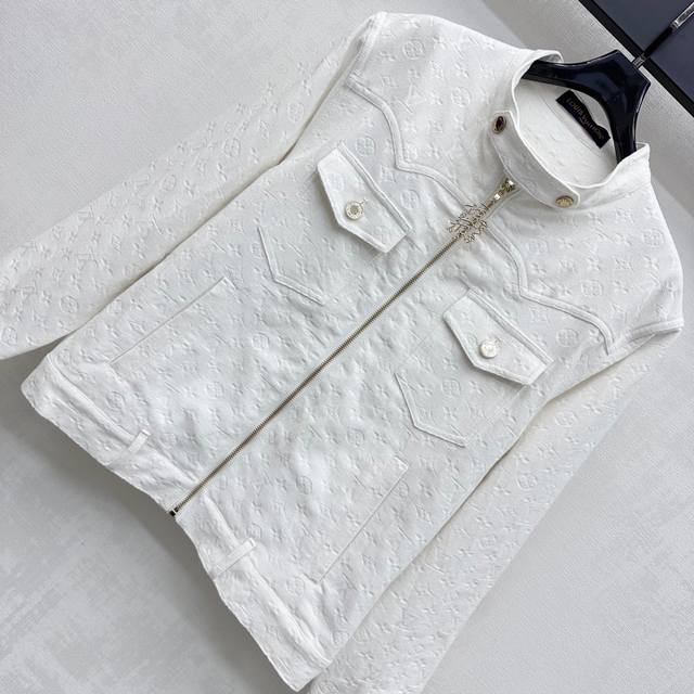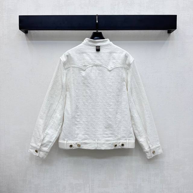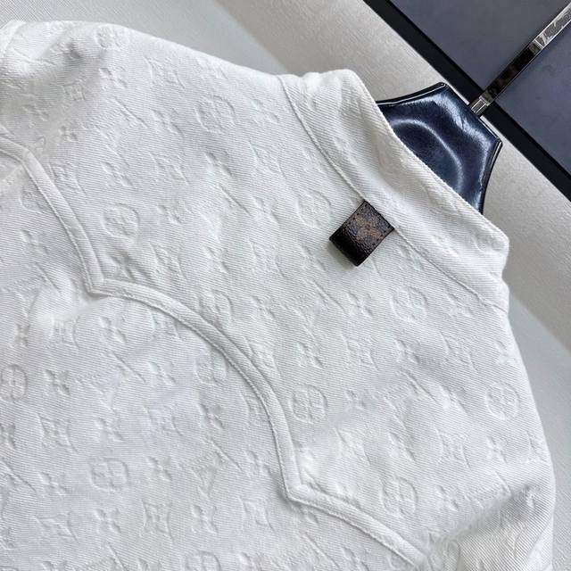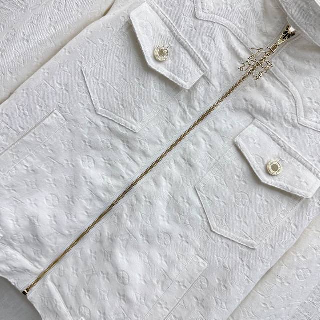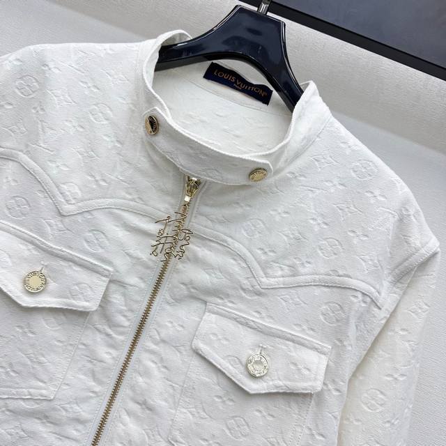 Louis Vuitto*2025 new arrivals Embossed denim jacket Customized Yb imported twill cotton denim material Breathable, comfortable and stylish Full-covered four-leaf clover letter logo Dark pattern highlights the brand tone Open-front letter logo zipper adjustment design Combined with symmetrical flap pockets on the chest to add layered shape Surface and accessories development Stand-up collar jacket tailoring Can be matched with long and short pants in the same series to wear as a set Fashionable and stylish Can also be purchased separately Matching series development