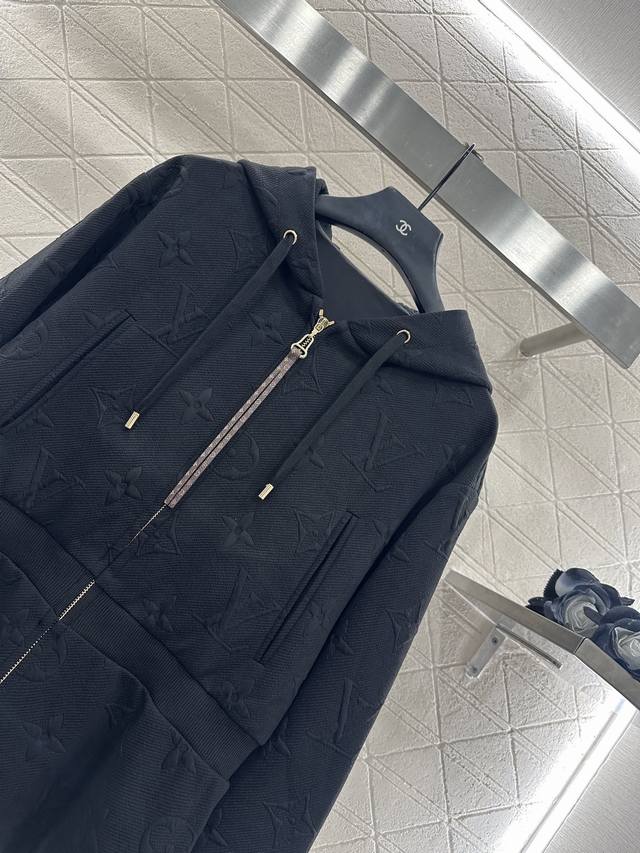 Louis Vuitto*2025 New Arrivals Embossed Hooded Waisted Jacket and Pants Set Cust