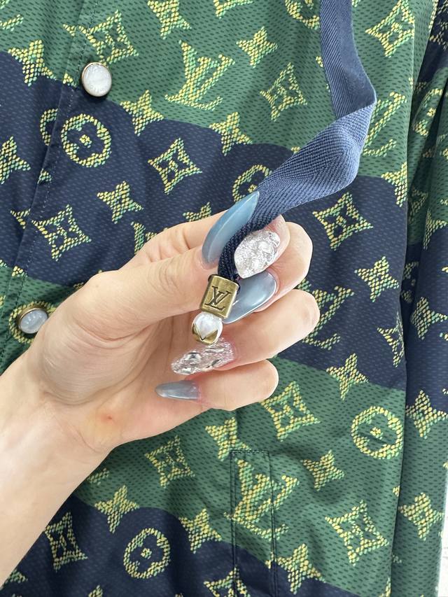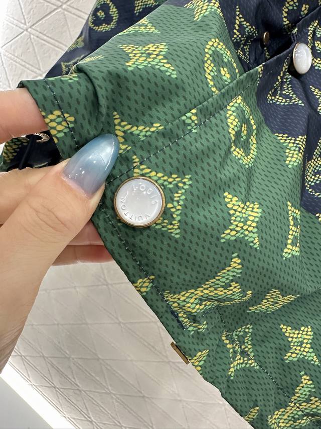 Custom Yb imported nylon jacket for a premium, crisp, and stylish look. The hooded zippered jacket features a loose-fitting silhouette, and the collar secures with snaps and can be removably worn as a lapel. The main body stripes are in a teal colorway, creating a relaxed, neutral, and outdoor-inspired look. The all-over four-leaf clover pattern creates a vintage-inspired feel. The hem features a natural, slightly flared A-line silhouette, easily adapting to any body shape and creating a stylish look with any outfit. For custom fabrics and accessories, look for the highest-end version.