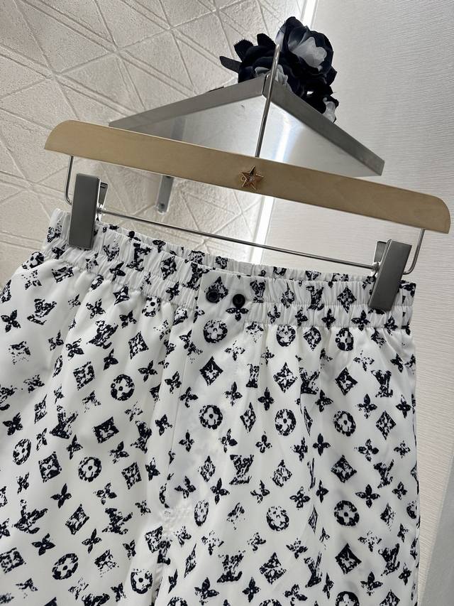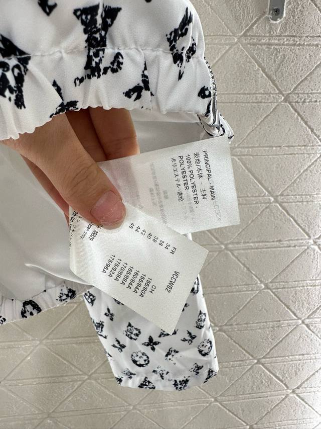 Customized Yb imported twill material Comfortable and easy to wear Straightforward and stylish Lapel zipper jacket, shorts Casual set Leather buckle zipper Easy to put on and take off Adjustable and at the same time echoing the body Full white background with black flowers Four-leaf clover letter pattern highlights taste Elastic hem narrowed visual effect makes it more neat Match with shorts from the same series Brand logo echoes up and down Highlights trend positioning Customized surface and accessories Look for the high version Shorts and jacket