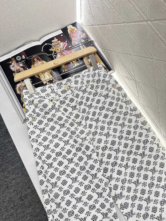Customized Yb twill denim material, enzyme washing process, ready-made garments are not easy to fade and color bleeding. Small stand-up collar, long-sleeved denim jacket, coat, high-waisted straight-leg wide-leg trousers set. The whole body is covered with four-leaf clover elements and letter patterns. It has a strong sense of old money and highlights the brand style. The heavy metal letter logo on the chest is embellished with rich visual effects to create a fashionable style. Match with the same series of buttoned high-waisted straight-leg trousers. The metal logo details on the back hip echo up and down to present a casual and free dressing style. The whole set is fashionable and stylish, and it is also great to match separately. Customized surface and accessories, look for the version, high version trousers 230, jacket 270