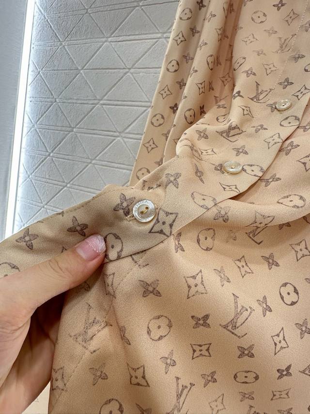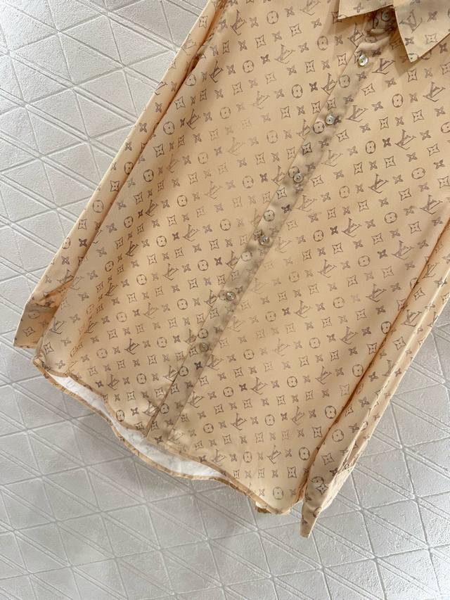 custom Yb imported twill material comfortable and delicate texture long-sleeved printed shirt skirt set neatly cut and slim fit all over the body printed with four-leaf clover and letter logo pattern old money full of fashion sense, showing high-end style with the same series of buttons slit mid-length skirt waist straight tube piece cover to modify the waist and abdomen crotch complete set upper body easy to wear with foreign style and high-end feeling home and outdoor wear are customized surface and accessories to identify the version of high version shirt 210 skirt 210