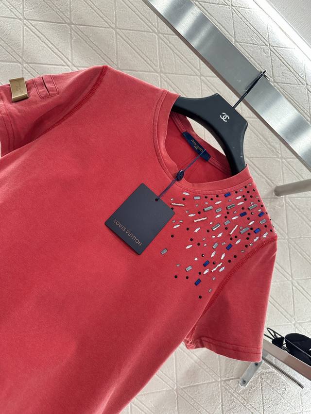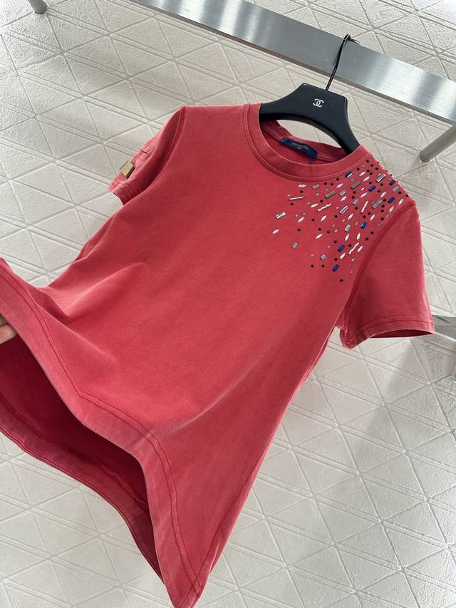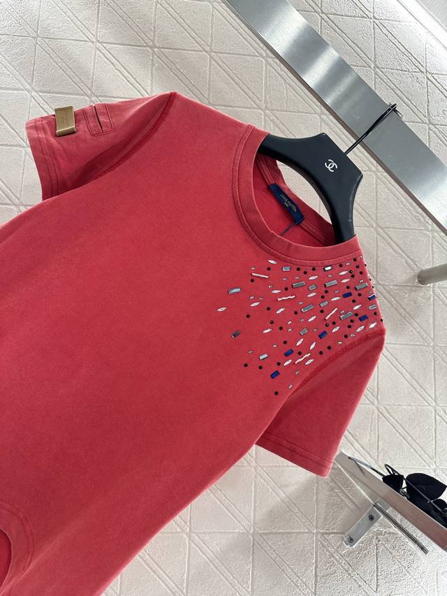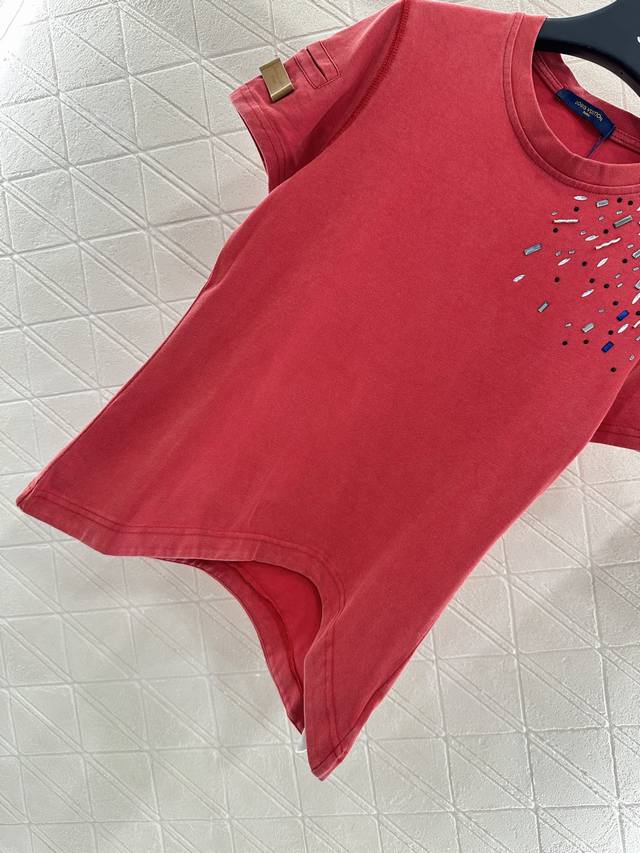 Custom Yb Washed Cotton Material Retro and Premium Texture Regular Short Sleeve Cut Highlights the Brand's Style Made of Heavyweight Cotton with a Slight Stretch for a Slimming Effect Tops with Off-Shoulder Front Extending to the Chest with Three-Dimensional Colored Rhinestones for a Gorgeous Design Sense of Design Leather Label on the Outside of the Cuffs Outlining the Letter Logo for a Premium Style Irregular Hem Reveals the Waist and Abdomen for a Personalized Look Custom Fabrics and Accessories Look for the Highest Version