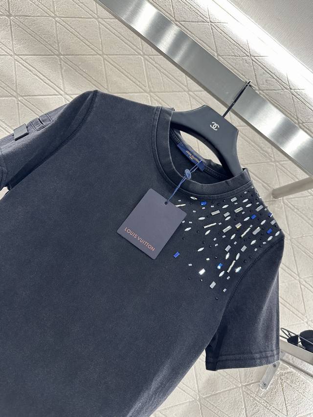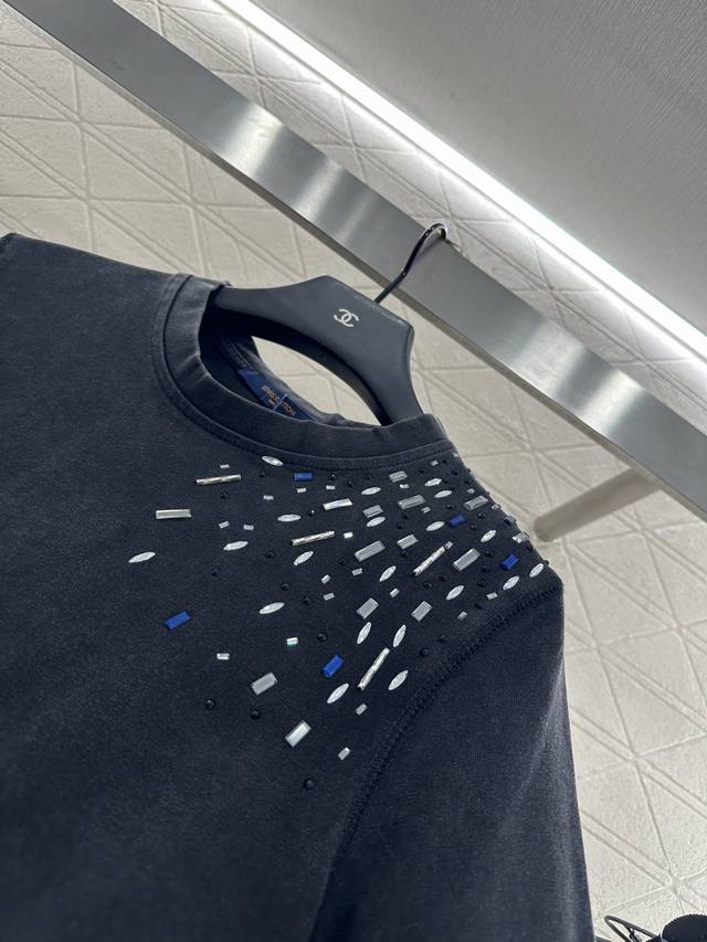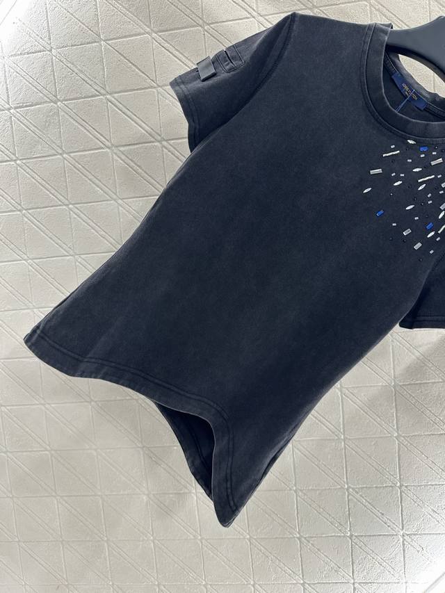 Custom Yb Washed Cotton Material Retro Luxury Texture Regular Short Sleeves Highlight the Brand's Style Made of Heavyweight Cotton with a Slight Stretch for a Slimming Effect Top with Off-Shoulder Front Extending to the Chest Embellished with Three-Dimensional Colored Rhinestones for a Luxurious Design. Leather Labels on the Outside of the Cuffs Depicting the Letter Logo for a Premium Look. Irregular Hem Lines Revealing the Midsection Adds Personality, Stylish and Custom Fabrics. Look for the Highest Version.