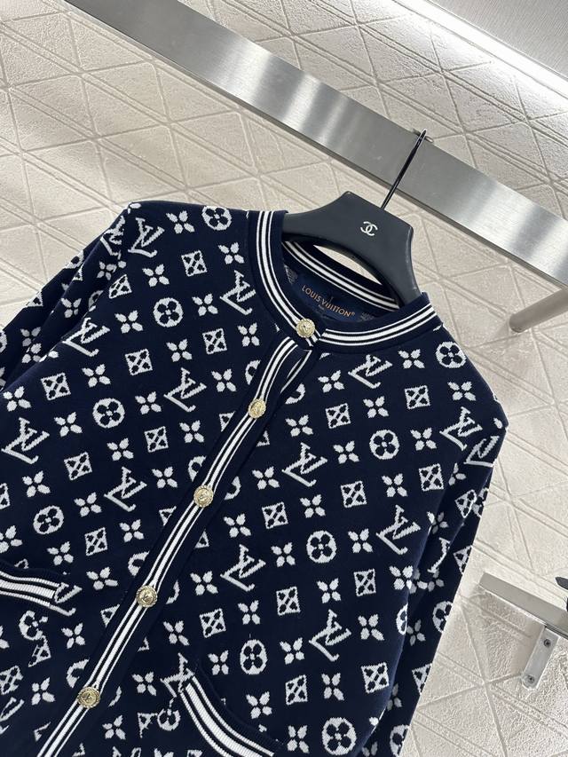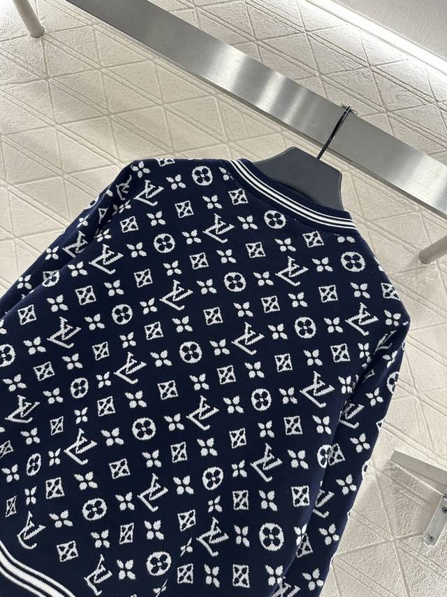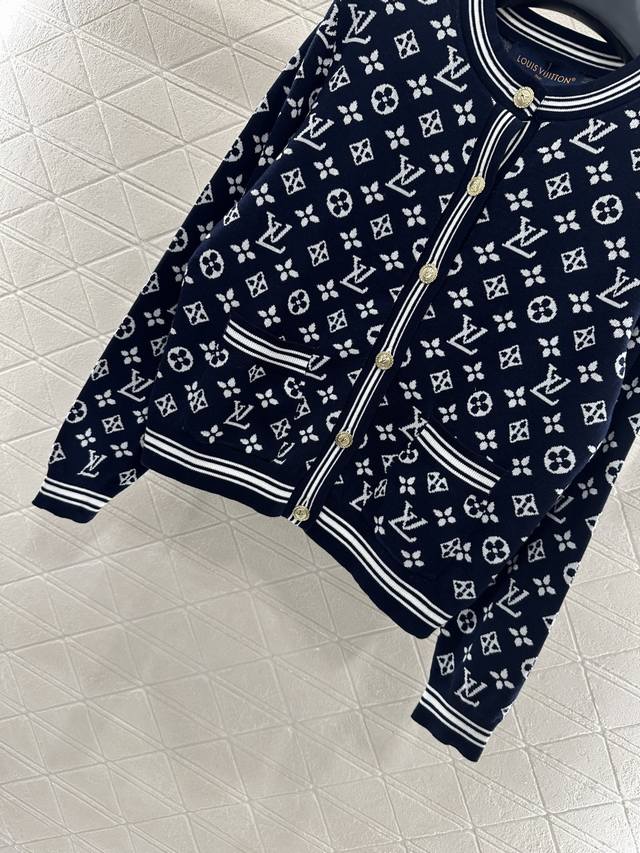 Custom Yb wool yarn weave for a refined and comfortable fit Round neck knit cardigan with all-over four-leaf clover logo and jacquard lettering, paired with binding and tonal stripes for a striking contrast. Stretchable fabric hugs the body for a slimming effect Round buttons on the front are embellished with an engraved logo, showcasing the brand's versatile style for both age and skin tone, making it a relaxed fit. Stylish and fashionable with custom fabrics and accessories. Look for the high-end version in two colors