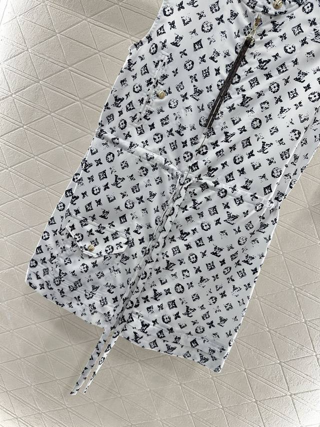 Customized Yb imported twill material with a glossy texture, comfortable and skin-friendly. The drawstring vest dress is tailored with a zippered front placket for adjustment. The leather chain buckle adds a sense of fashion. The four-leaf clover elements and letter logos throughout the body are symmetrical with flap pockets, showing the brand's fashionable style. The drawstring belt decoration outlines the perfect waistline and divides the proportions. The loose and tolerant version is not picky about the body shape, showing a trendy and cool style. It is easy to wear and customize the surface and accessories. Look for the high version in 2 colors