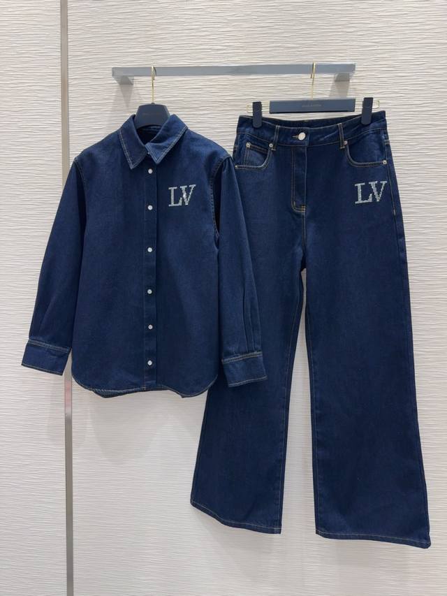 Louis Vuitto*2025Fw new denim suit high edition ~ fermented washed personalized color, cool and sassy upper body. Made of custom high-quality twill cotton washed denim fabric with fine texture and natural cotton feel, it has both sturdy and soft texture. The fermented washed color is a classic color that is suitable for everyone. Super beautiful! The details and workmanship are superb. New products are in stock and can be grabbed out of the box. Sml S shirt shoulder width 43.5, chest 97, back center length 68, sleeve length 53. S trousers waist 69.7, trouser length 104, hip 92, shirt 290, trousers 230