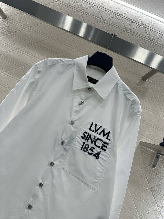 Louis Vuitto*2026 New Arrival Ddd Embroidered Letter Pocket Long-Sleeve Shirt Ddd Custom Made of 100% virgin cotton, with a delicate texture and comfortable wear. The long-sleeve, open-front shirt design strikes a perfect balance between simplicity and sophistication! The clean, pure white fabric exudes a sharp, clean look. The "Since 1854" embroidered lettering on the pocket is a subtle identifier. This classic shirt flatters all body types; worn alone, it creates a sophisticated, professional look, while layering it unlocks a casual street style. One piece unlocks countless styling possibilities, making it an indispensable wardrobe staple. Simple yet elegant, the regular straight silhouette is slimming and relaxed, easily paired with various outfits for a fresh, youthful, and stylish look. Custom fabrics and accessories, please ensure you choose the high-quality white version. DDD