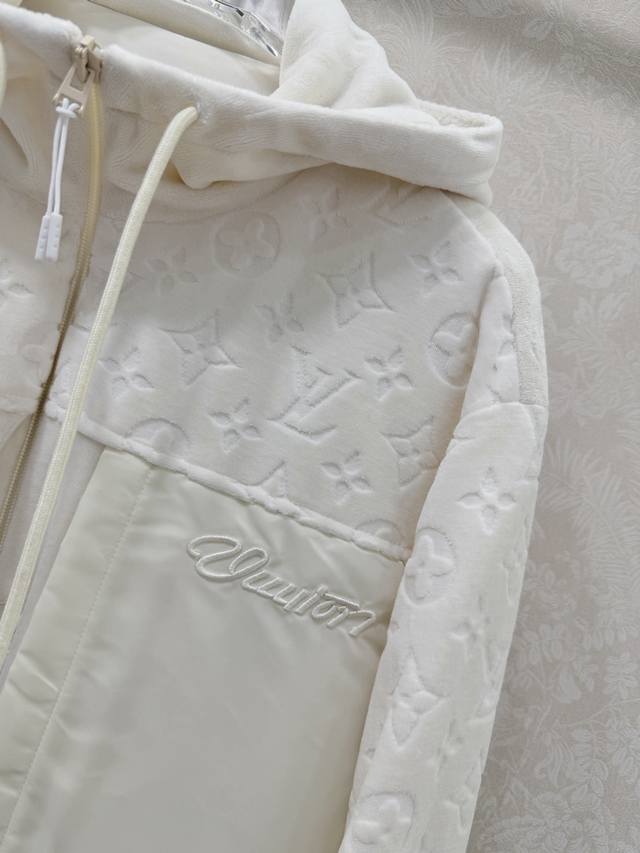 Louis Vuitto*25 New Hooded Teddy Faux Lambswool Sweatshirt Pullover Style. Features 3D embossed lettering on shoulders and sleeves, velvet fabric, nylon pockets, and embroidered lettering. Custom hardware adds a touch of brand style. The solid color is incredibly sophisticated and suitable for various occasions and personal styles. The regular loose fit is fashionable and forgiving, a must-have for autumn and winter. High-quality feel, a warm winter essential you won't regret buying. Available in single color, sizes Smlb DDD Ddd