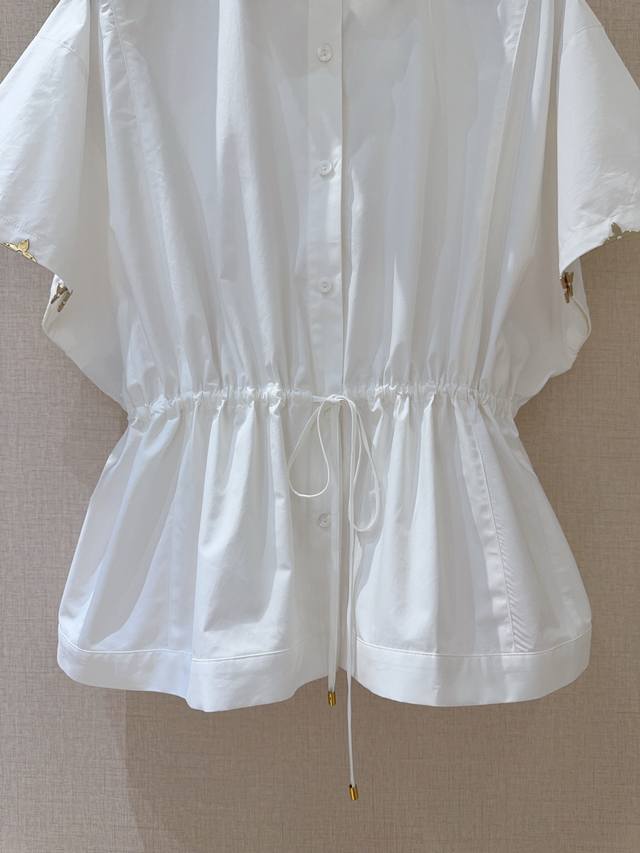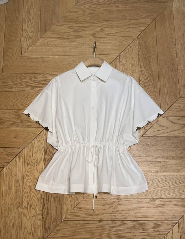 Louis Vuitto*25 New product lapel drawstring waist pleated lace shirt Customized