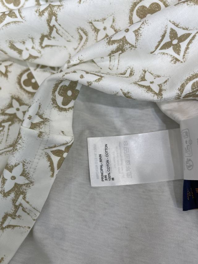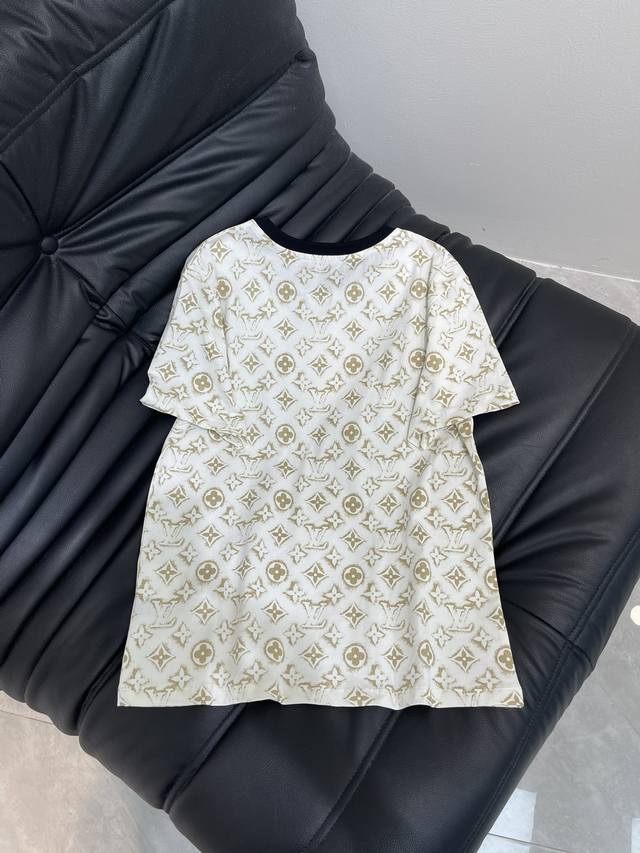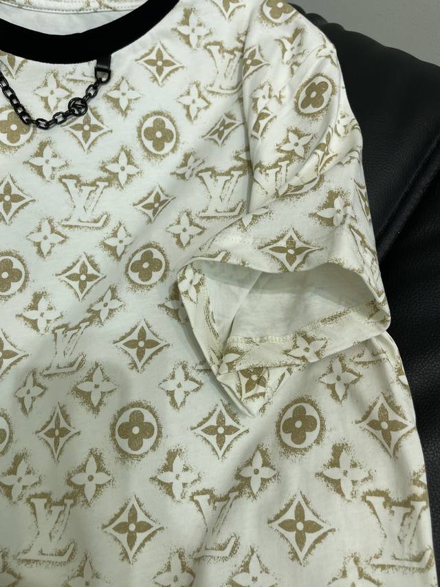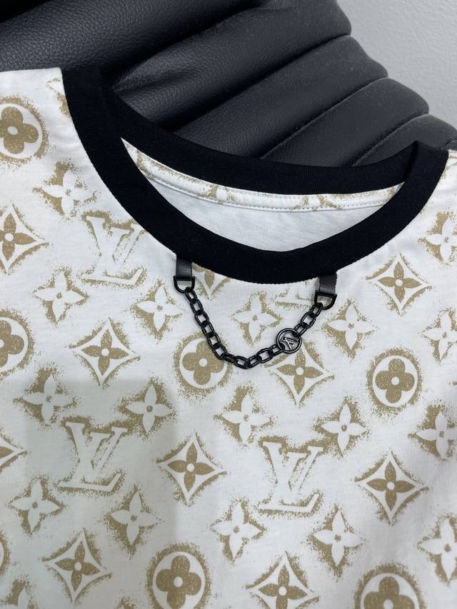 Louis Vuitto*25 New style printed chain short-sleeved T-shirt custom Yb mercerized cotton material breathable and comfortable texture Regular short-sleeved T-shirt tailoring highlights the brand style Made of heavy cotton with a slight stretch to show a slimming visual effect The neckline is solid-colored and edging is covered with four-leaf clover elements. The letter logo is worn and worn to increase the retro feel. The letter chain highlights the high-end style. It is colorful and fashionable when worn alone or worn inside Sml Aa