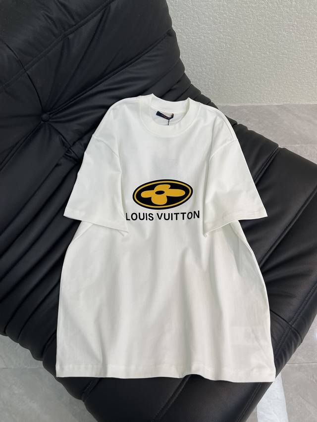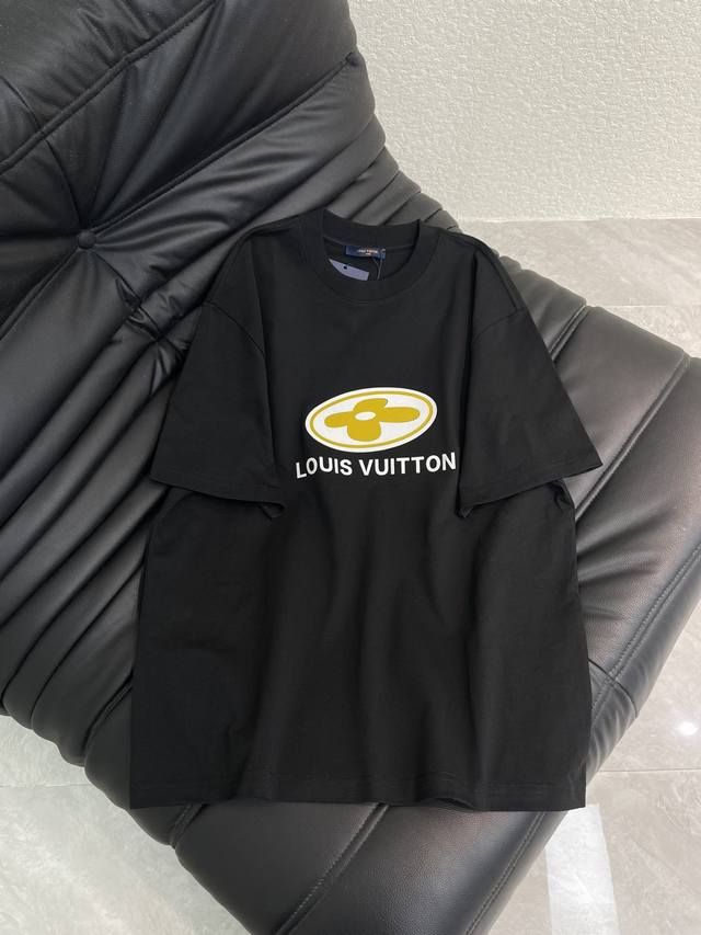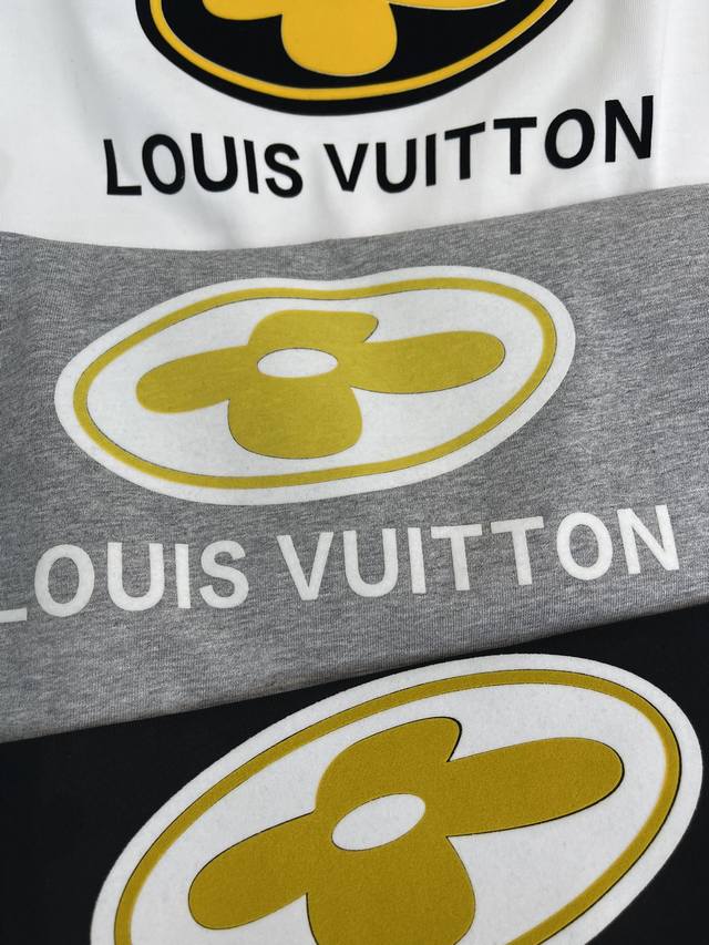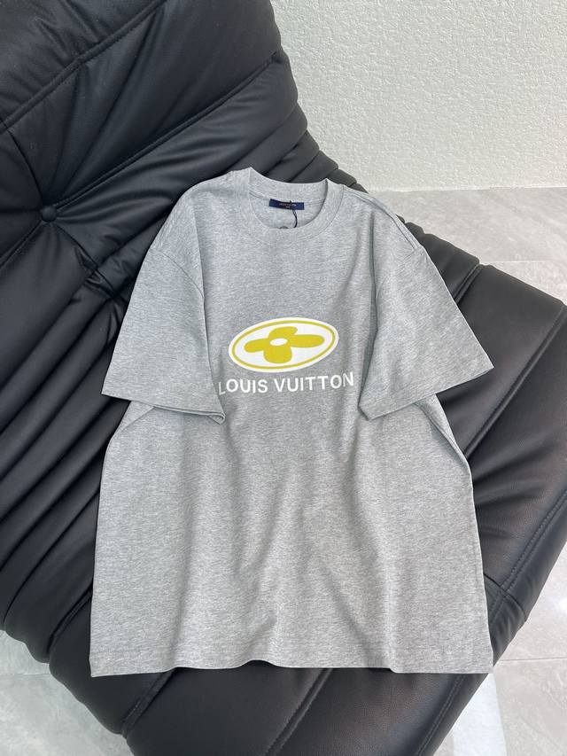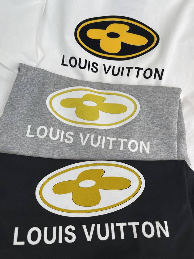 Louis Vuitto*26 Early Spring New Short-Sleeve T-Shirt. Features a flocked four-leaf clover logo on the chest. Made from high-weight washed fabric with complex craftsmanship, the T-shirts feature unique color combinations and a striking contrast between the colors, making them a street style statement. These T-shirts are not only fashionable, but also feature colorful patterns that are fun and eye-catching. They are slimming and unisex. Colors: White, Gray, Black. Sizes: S-XL.