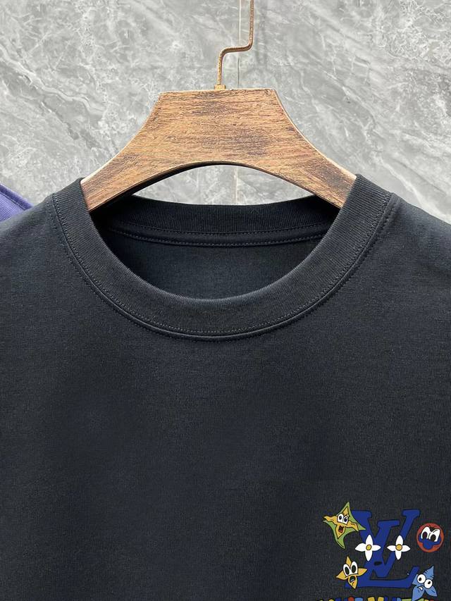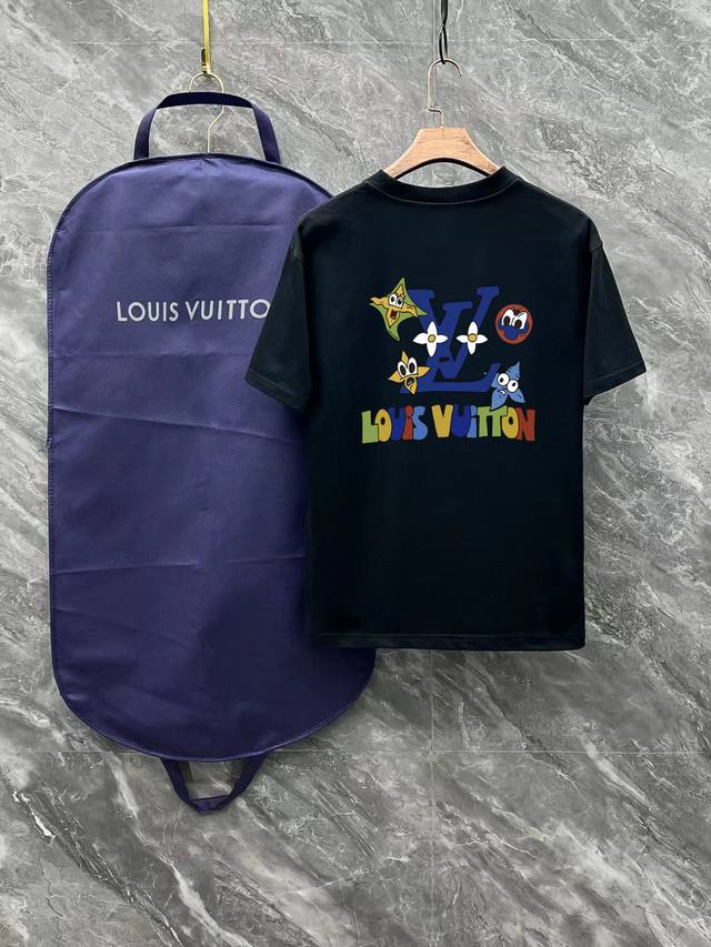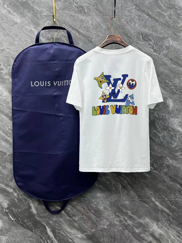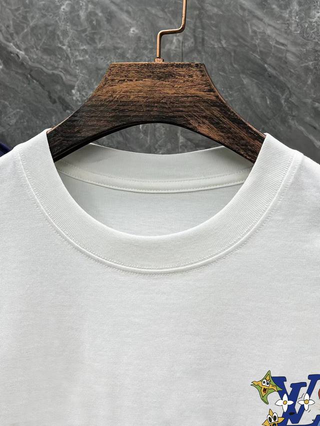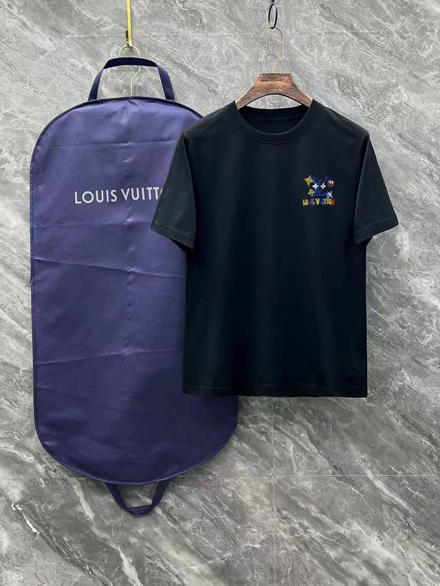 Louis Vuitton# 2025 Spring and Summer New Release, the latest short-sleeved round neck T-shirt, high-end custom design, avant-garde and fashionable! Brand Logo, heavy craftsmanship design, high-end customization, 250 grams of Xinjiang long-staple cotton fabric. Soft to the touch. Comfortable to wear. Exquisite stitching at the counter level. Fine workmanship. The upper body effect is invincible and handsome! A must-have item for men! Color: black. White!