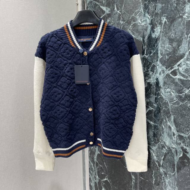 Louis Vuitton 25 Autumn/Winter New Jacquard Knit Cardigan with Color Blocking and Preppy Style - Super Comfortable for Autumn/Winter. Baseball collar + color-blocked striped details with LV logo, exuding brand awareness. The loose fit is very forgiving and looks stylish with jeans or casual pants. It's suitable for both work and leisure, a versatile autumn/winter item. Available in Sml DDD