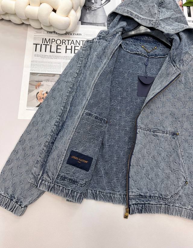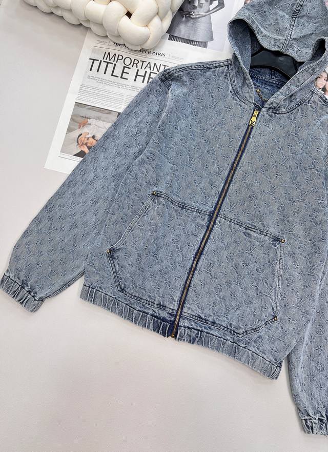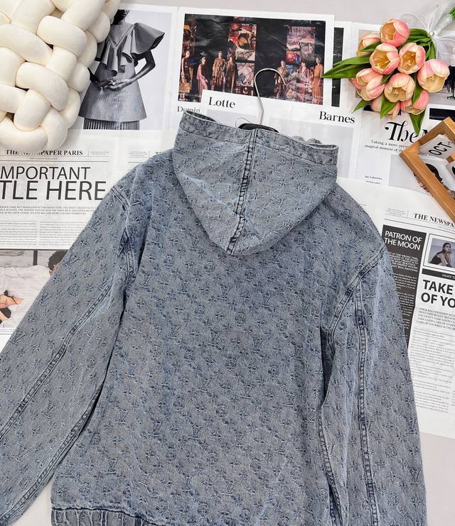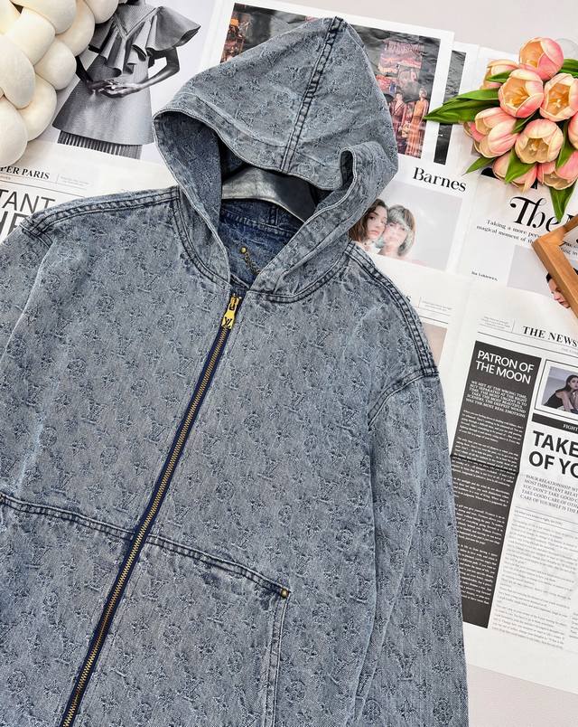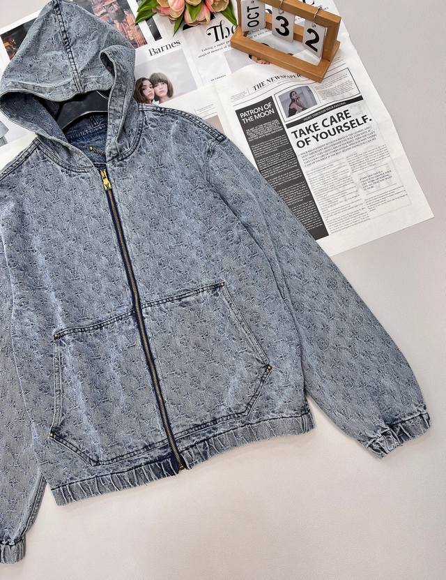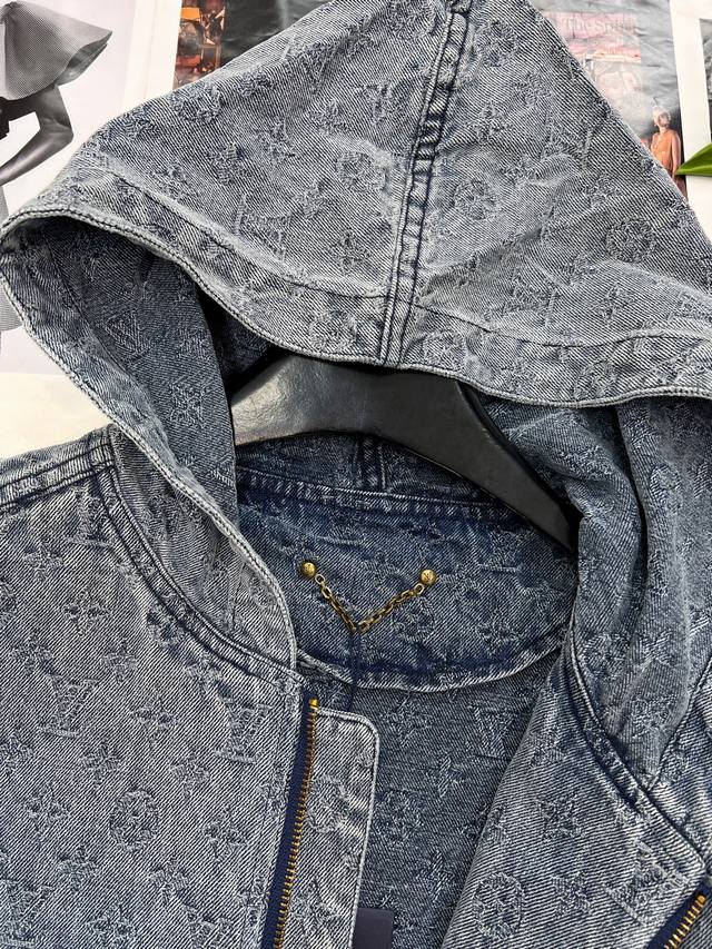 Louis Vuitton 25Fw Early Fall New Monogram Jacquard Denim Hooded Jacket | Exclusive High-Rate Edition! Crafted from denim, this jacket features an allover Monogram jacquard pattern for a striking silhouette. Highly recommended for both men and women. Quality is evident in the details. This unisex jacket features the same design and comes with all three standard labels. Available in bulk: