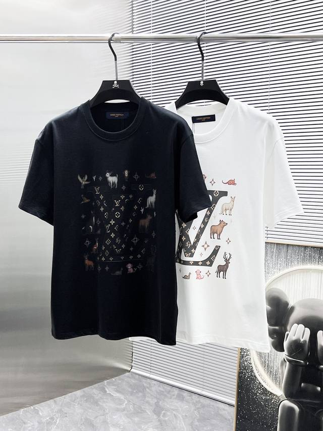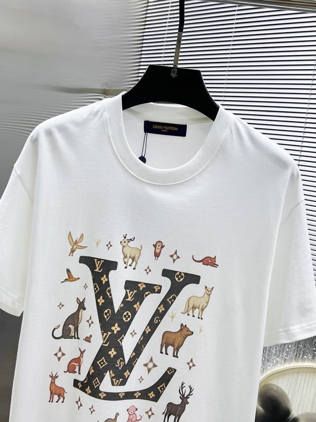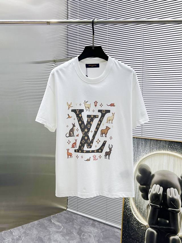 Louis Vuitton Lv 2025Ss new half-sleeve T-shirt, short-sleeved round neck T-shirt, high-end version! Custom-made counter fabrics are highly breathable and comfortable, with impeccable details, brand element design concept, and high quality. It feels delicate and soft! It presents a casual cut, and the upper body version is superb! Size: S-Xl