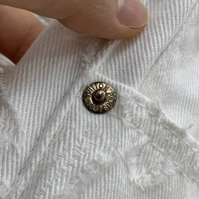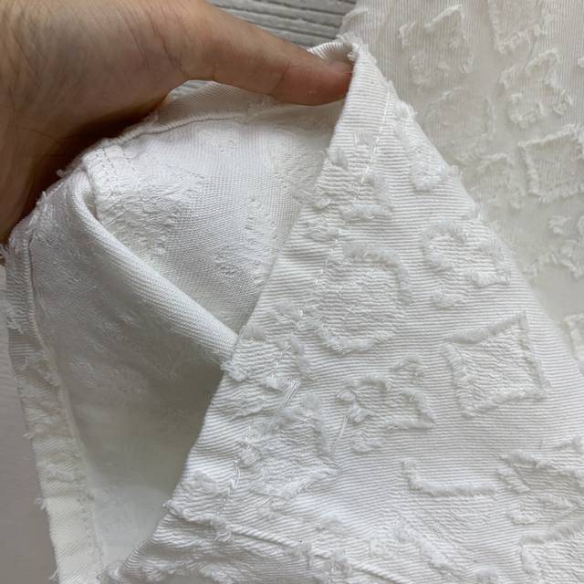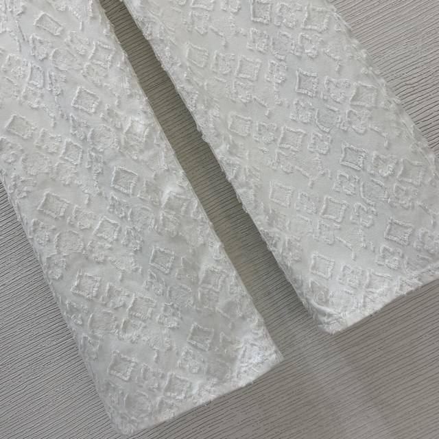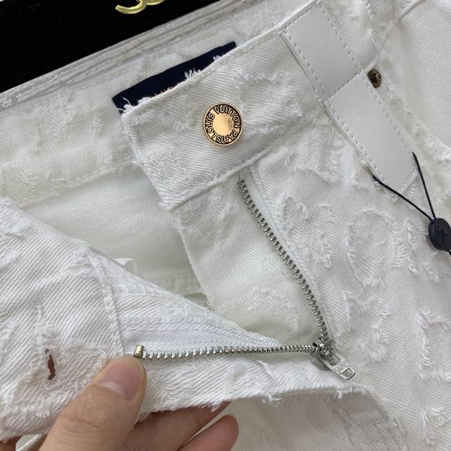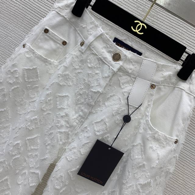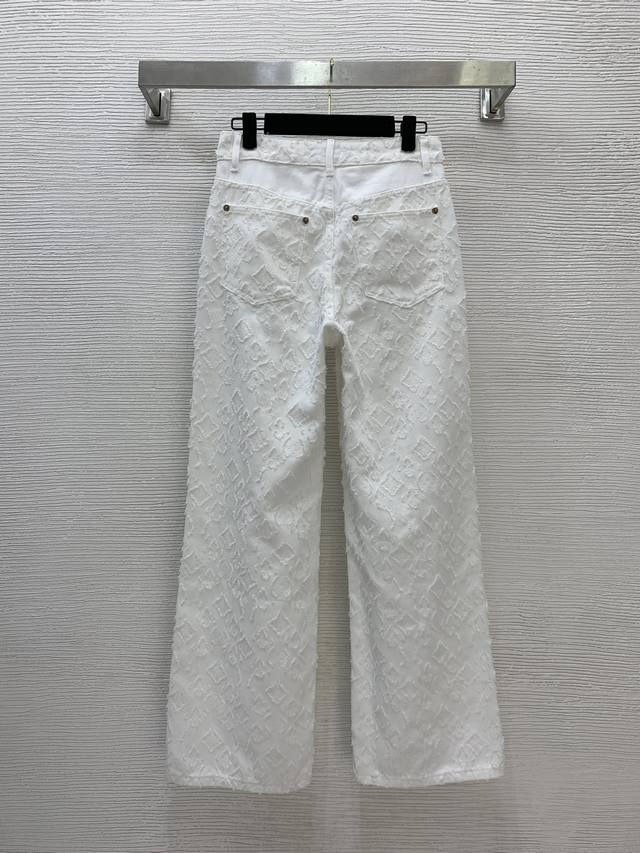 Louis Vuitton (LV) New Arrival! High-quality custom monogram jacquard fabric, original logo lettering, distressed hardware, high-waisted, slimming, stylish, versatile wide-leg jeans! White, Size M: Waist 72cm, Length 102cm.