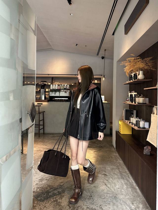 Louis Vuitton (LV) New Style Monogram Print Jacket with Logo, Stylish and Elegant PU Leather Hooded Jacket with Drawstring Waist! Black, Size M: Shoulder Width 55cm, Chest 116cm, Sleeve Length 54cm, Length 72cm (DDD)