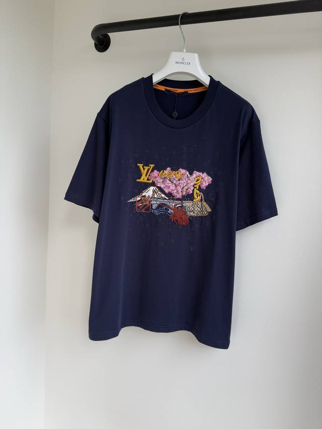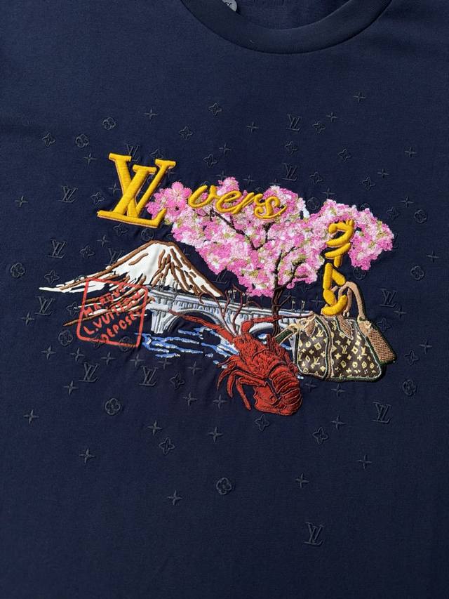 Louis25's new fall limited edition embroidered crewneck T-shirt is now shipping. This T-shirt references motifs from the Autumn/Winter 2025 runway show, featuring vibrant embroidery depicting Pharrell Williams and Nigo leisurely fishing in a bucolic setting. This piece showcases the designers' collaborative spirit and deep friendship. A Marque D