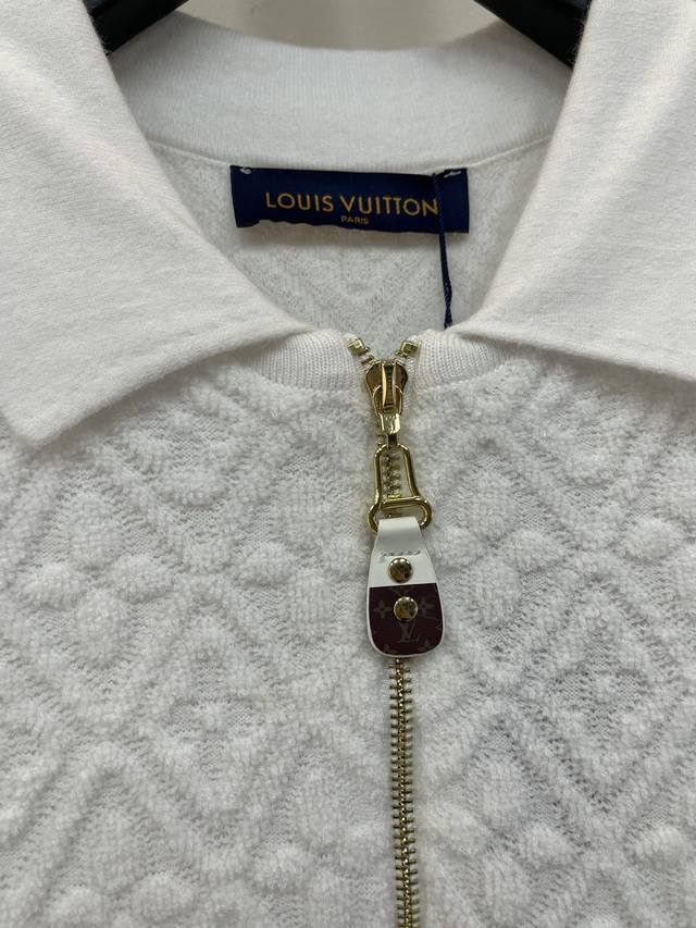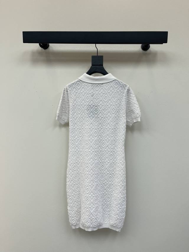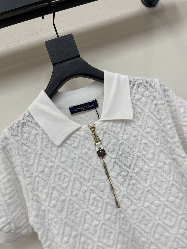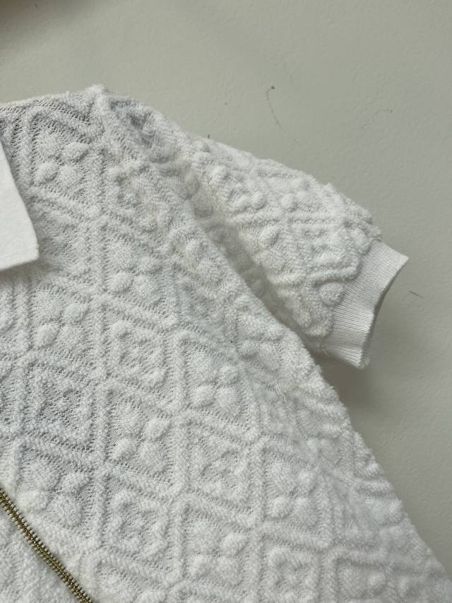 Louis*Lv new high-end custom, three-dimensional old flower towel fleece knitted fabric half zipper front lapel slim fit short-sleeved dress! White, Aa
