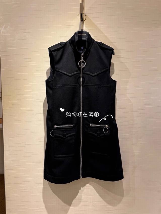 Louis*LV New Style Celebrity Liu Yifei's Fairy Sister's Same Style, Cool and Stylish Workwear Style Shoulder Buckle Double Pocket Zipper Placket Stand Collar Slim Fit Sleeveless Vest Dress! Black, Size M: Shoulder Width 36, Bust 94, Dress Length 78 DDD