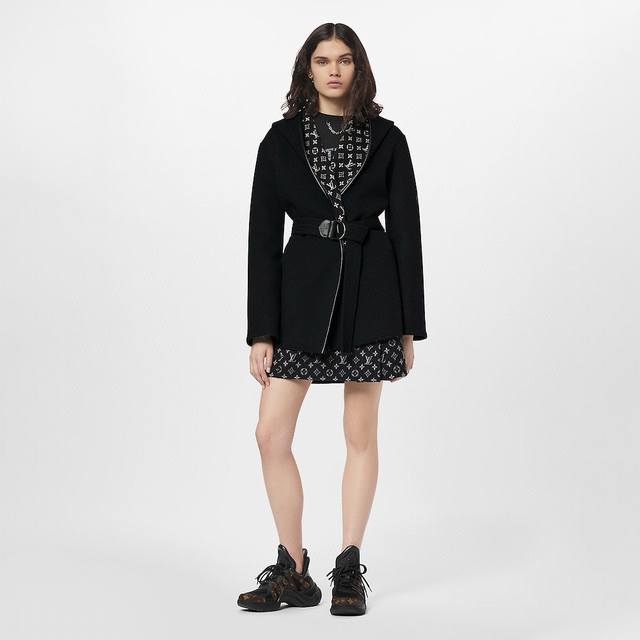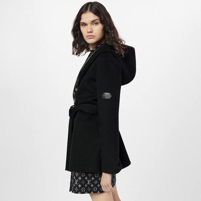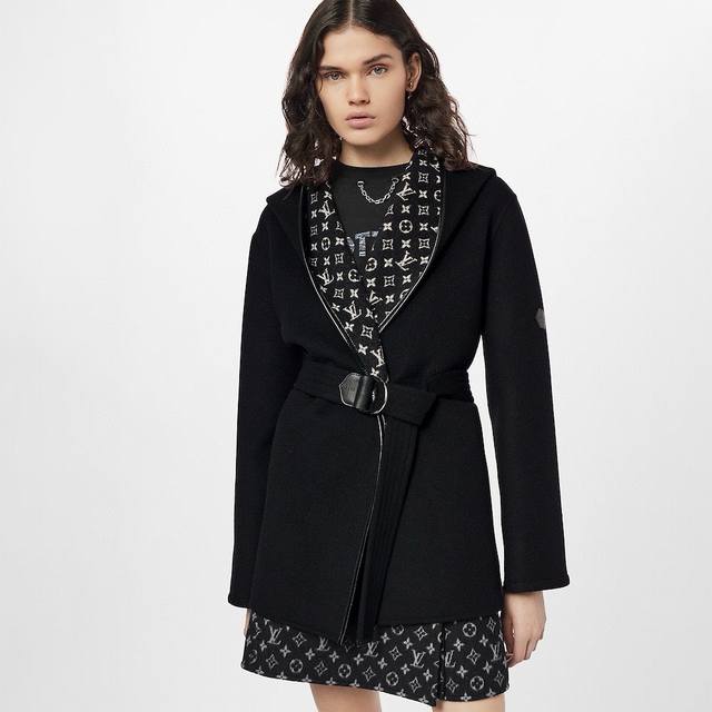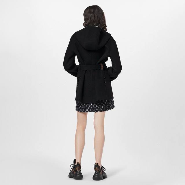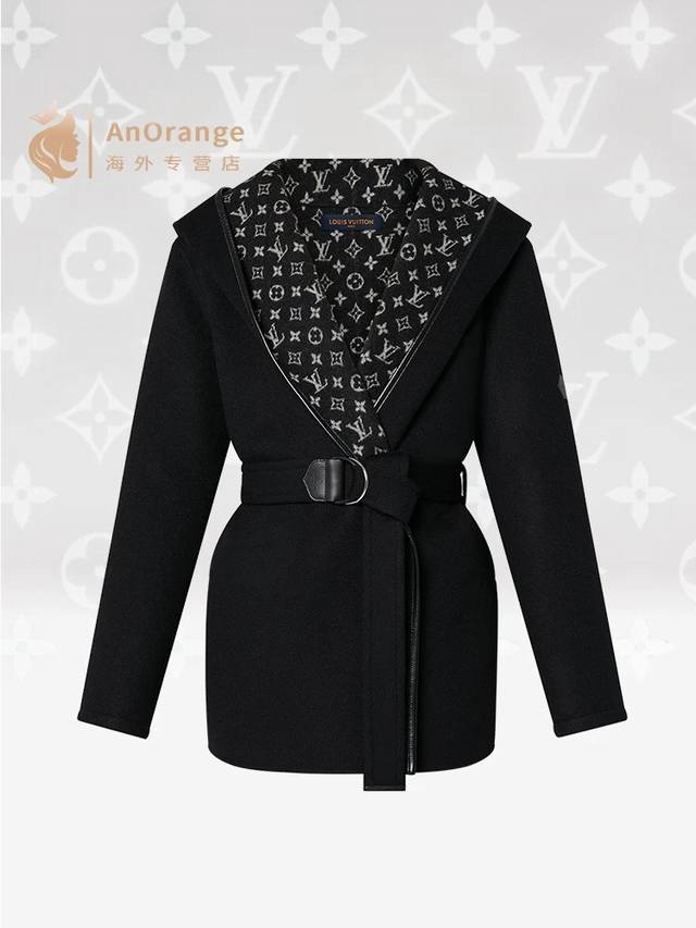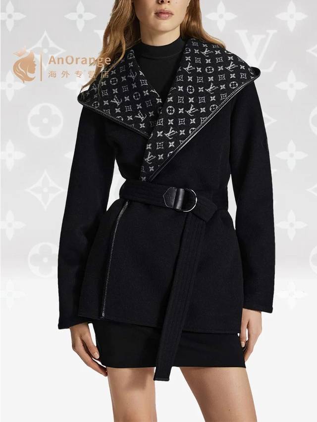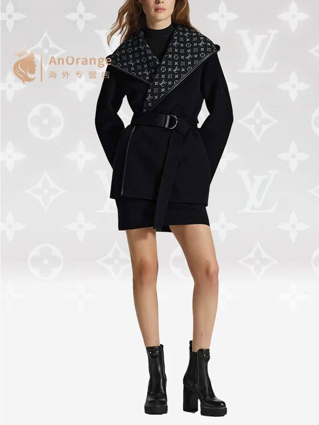 Louis*Lvjia New Exclusive Custom-Made Coat, Made with Selected Thick Fabric, Not the Thin Fabrics Found on the Market! The Fit is Crisp and Stylish! A Timeless Classic Monogram Logo Print with a Belt for a Slimming Waist, Large Lapel, Hooded Short Wool Coat! Black, Size M: Shoulder Width 50cm, Bust 110cm, Sleeve Length 52cm, Length 76cm DDD
