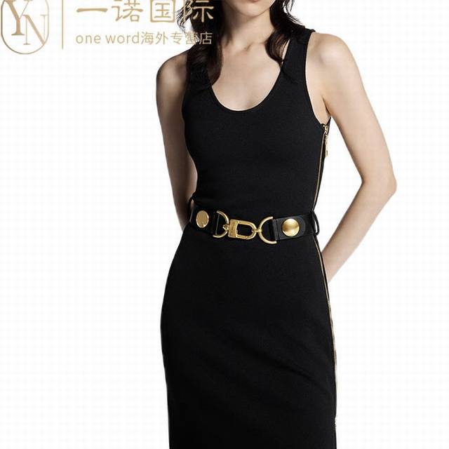 Louis*Lv's new early fall collection, simple and stylish, featuring a double-ended zipper design on one side and a lock belt for a slimming, sleeveless vest dress! Black, size M: bust 98cm, length 101cm