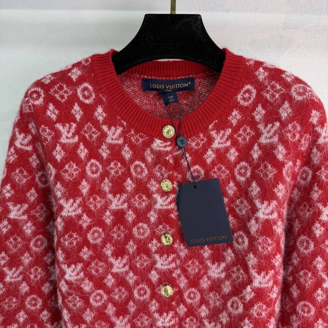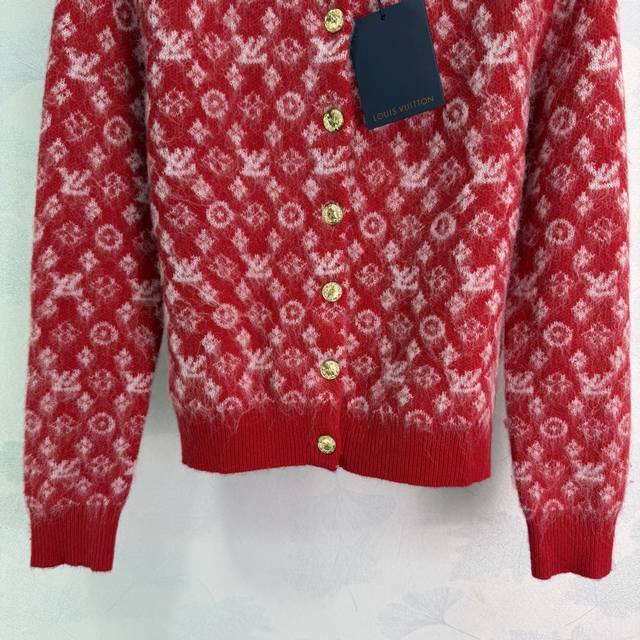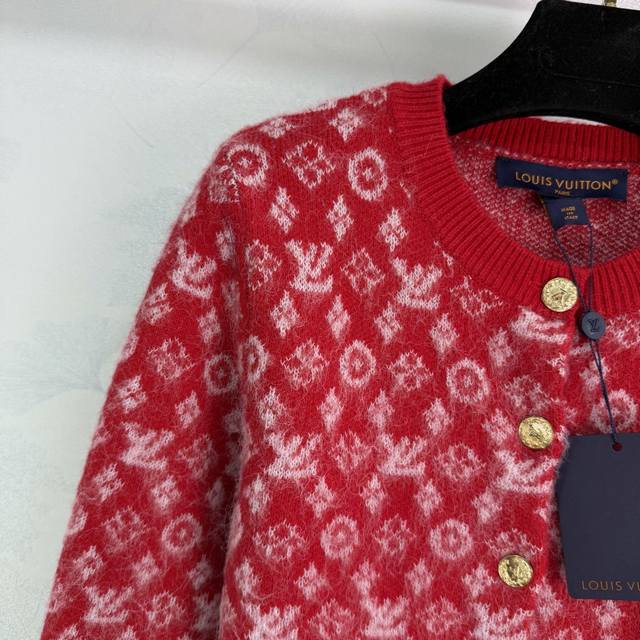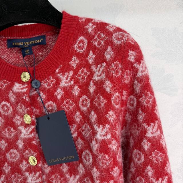 Lou*Louis Vuitton*25 Autumn/Winter New Knitted Crew Neck Cardigan Ddd Classic Brand Letter Logo Pattern Color Block Jacquard Fleece Design Yb Mold Opening Letter Logo Metal Buttons Adornment Christmas and New Year Atmosphere Essential for Outfits Sizes Sml. T226B. DDD