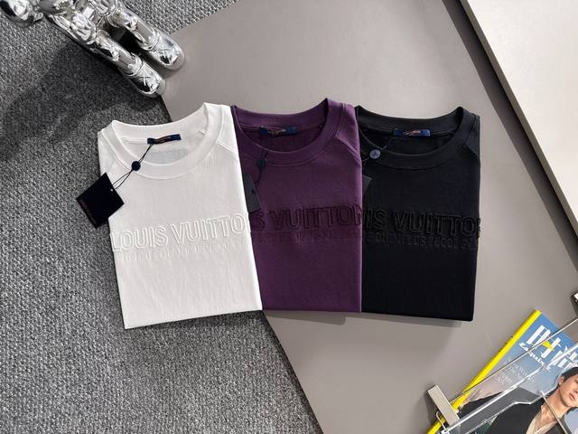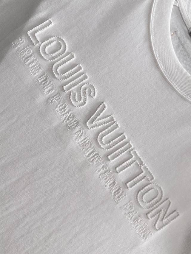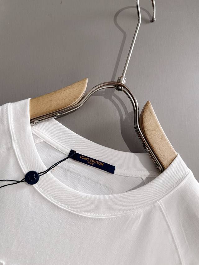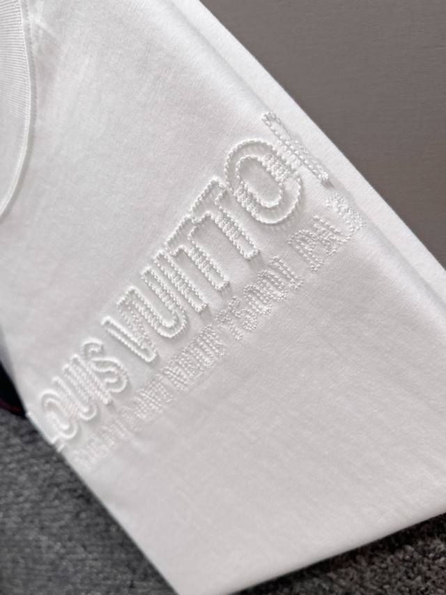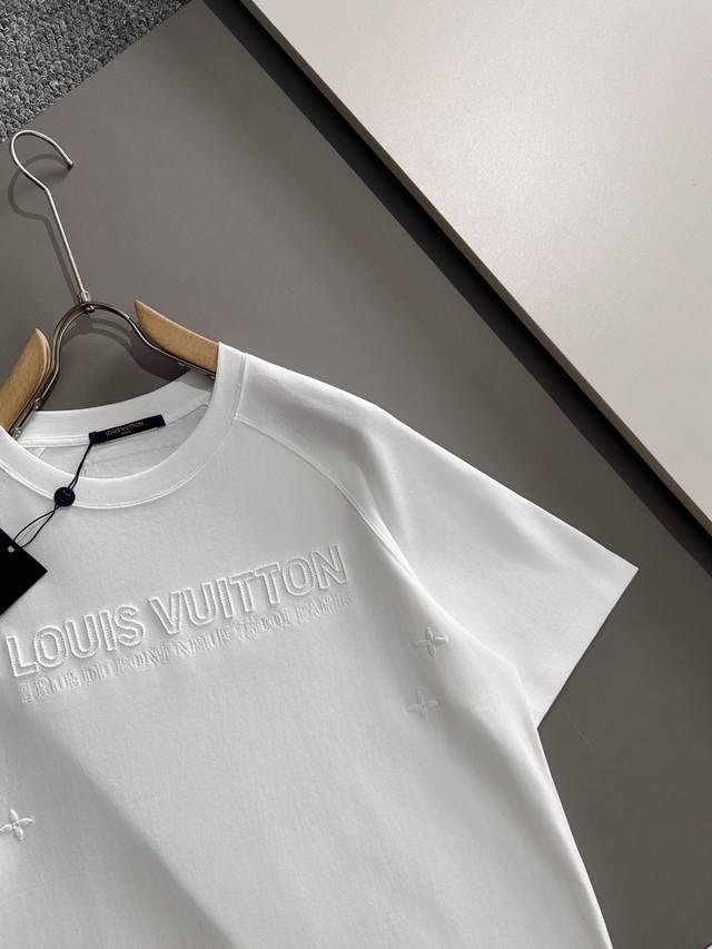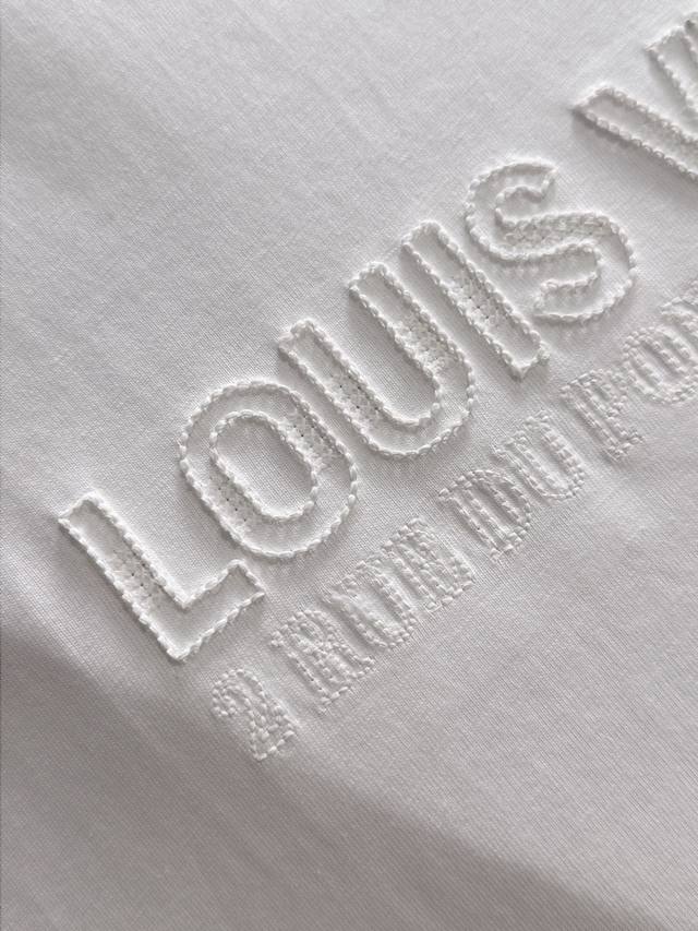 Lv 2025 new light luxury hollow particle embroidery logo custom leather badge unisex short-sleeved T-shirt