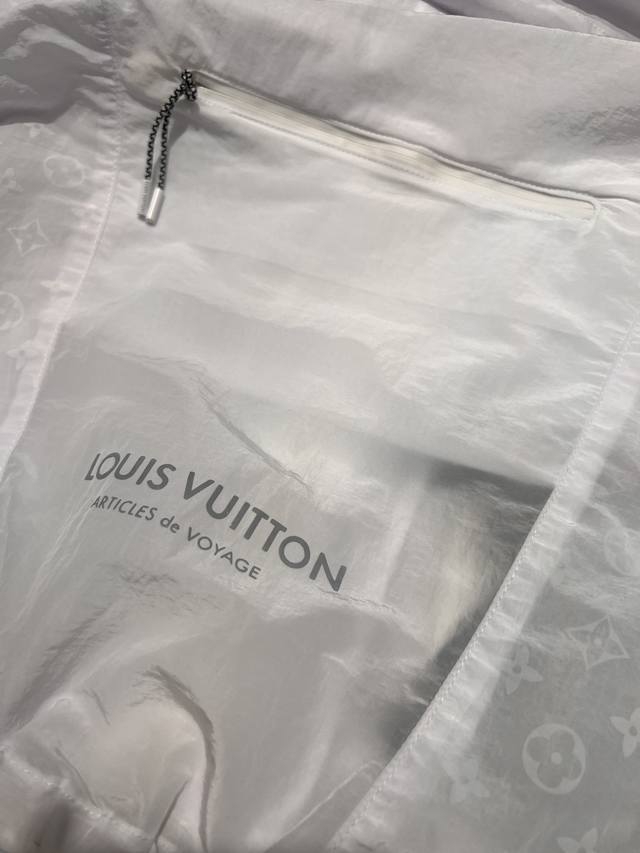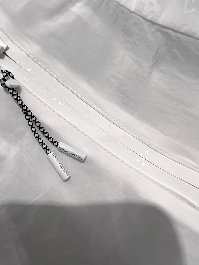 Lv 2025 summer new sun protection jacket, the same style as Victoria Song, available on the official website, 1:1 replica of the original, unique design, full of monogram classic elements and avant-garde tailoring collision, highlighting the brand's unique charm, no matter where you go, it is the focus of attention. Hood drawstring with zipper closure, easy to put on and take off, you can also adjust the tightness, practicality is maximized Sml