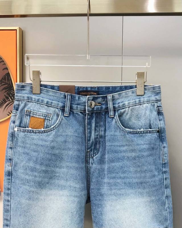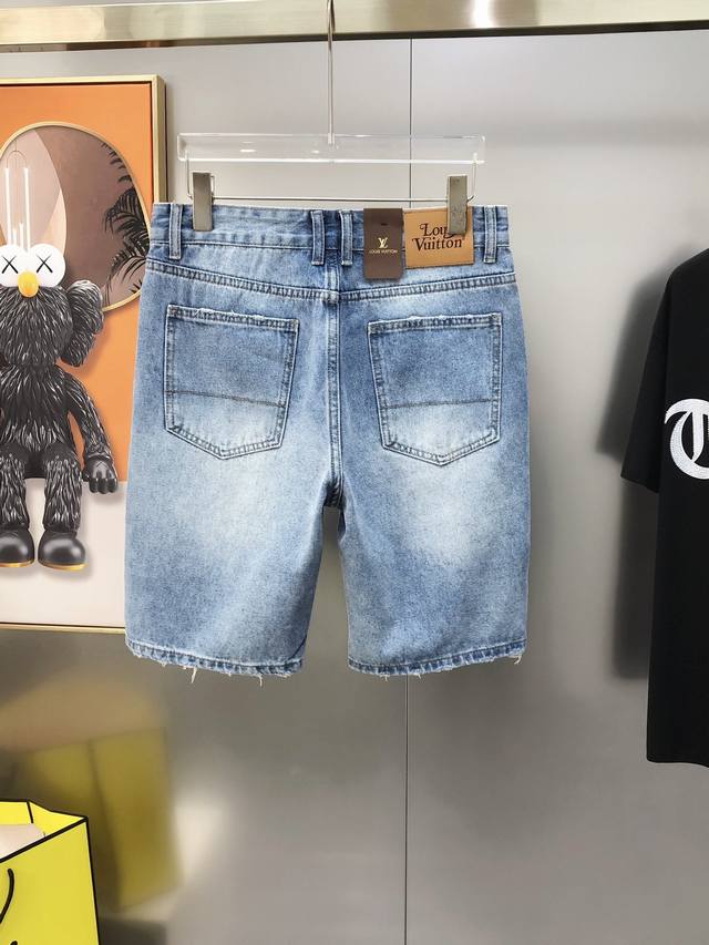 Lv Louis Vuitton 2025 Spring and Summer new men's denim shorts official website synchronized fashion personality hot style high-end customization original goods customized imported denim washed denim pure cotton fabric original accessories fine workmanship cool vitality soft delicate comfortable breathable matching rate extremely high wear rate counter quality upper body super handsome and stylish size: 28-38 size 35, 37 shipped the next day
