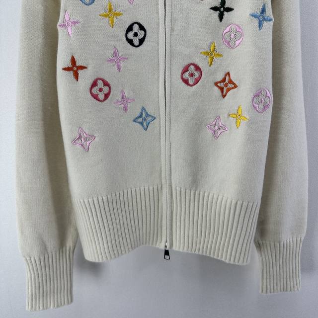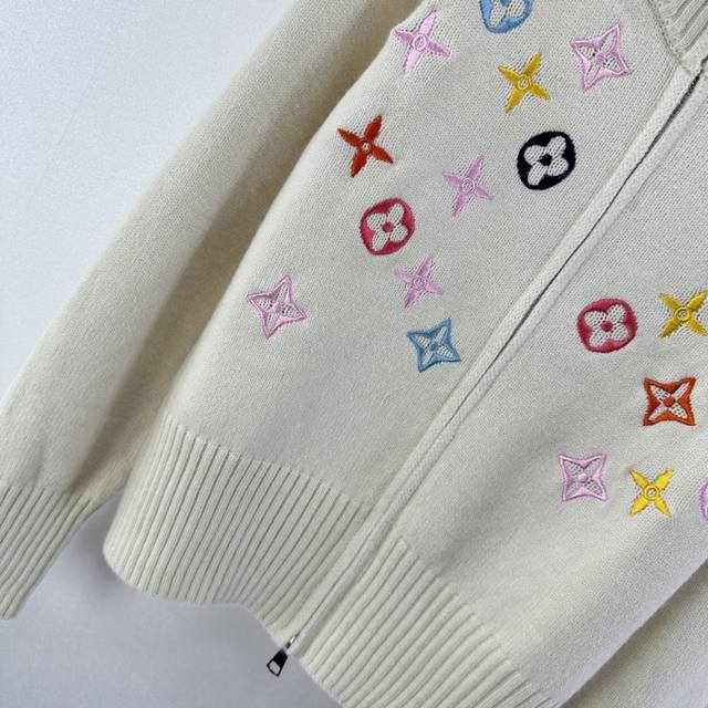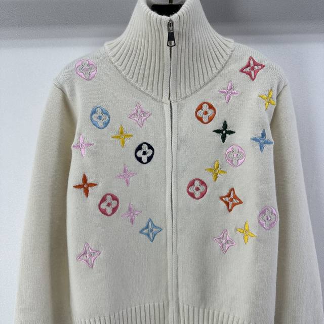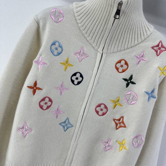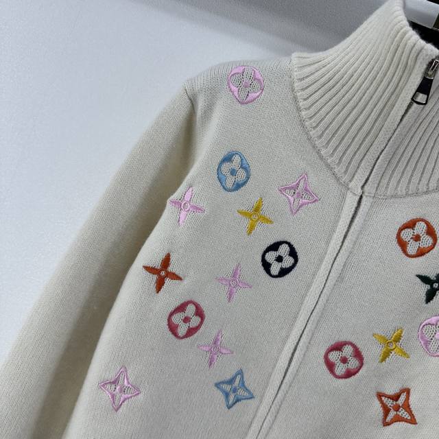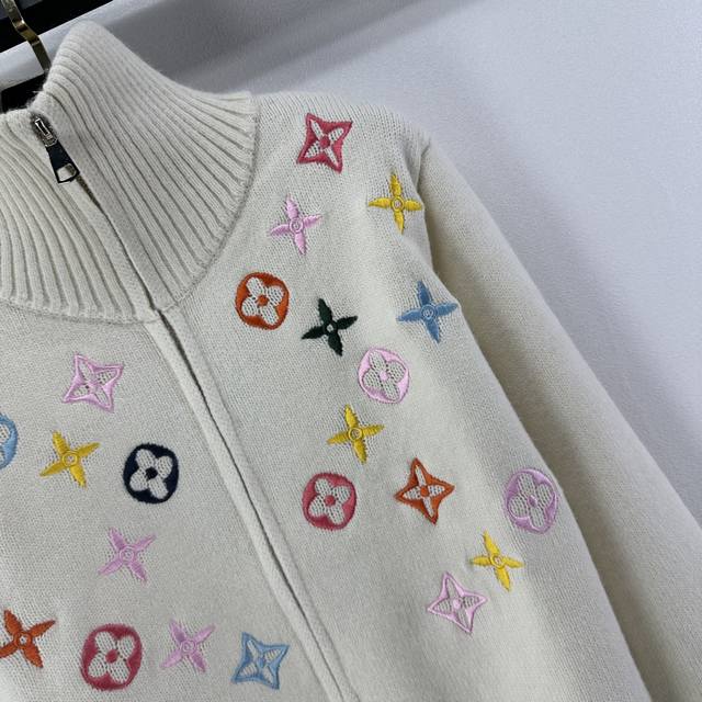 Lv New Arrival Details: Autumn/Winter New Stand-up Collar Knit Cardigan, soft material + classic monogram pattern, exuding brand style! Stand-up collar with zipper design, super warm and fashionable for autumn and winter. Easily styled in contrasting colors or simple designs. The knit is stretchy and looks great with skirts or pants. Available in 2 colors and 3 sizes (S, M, L).