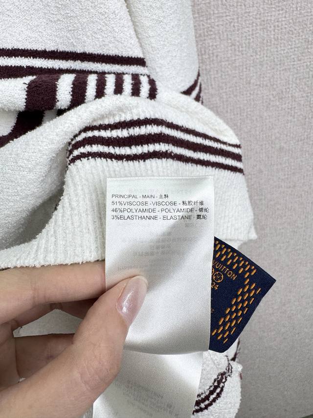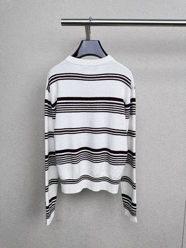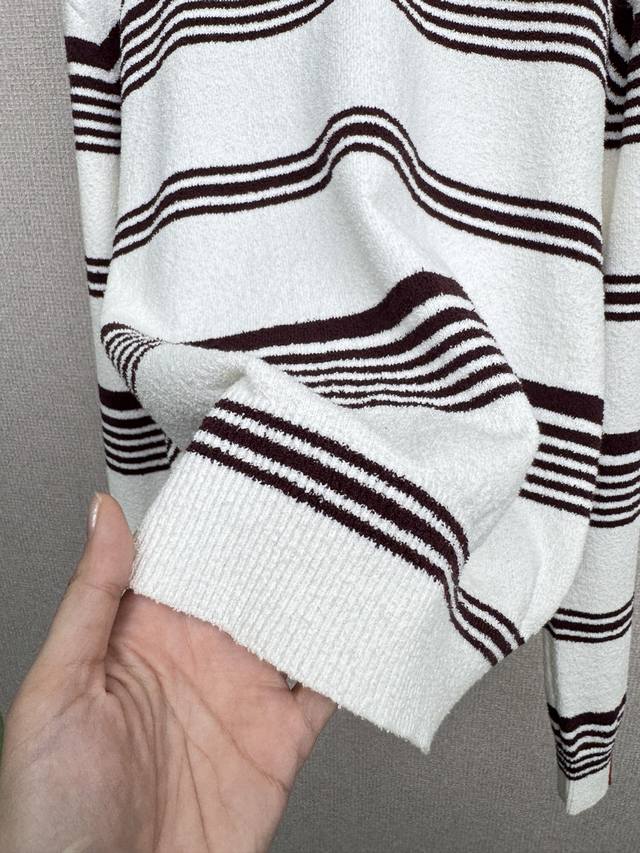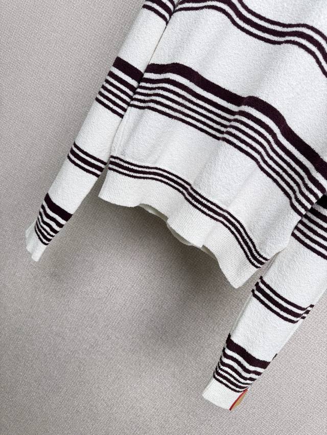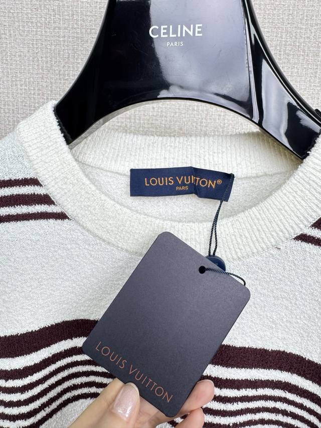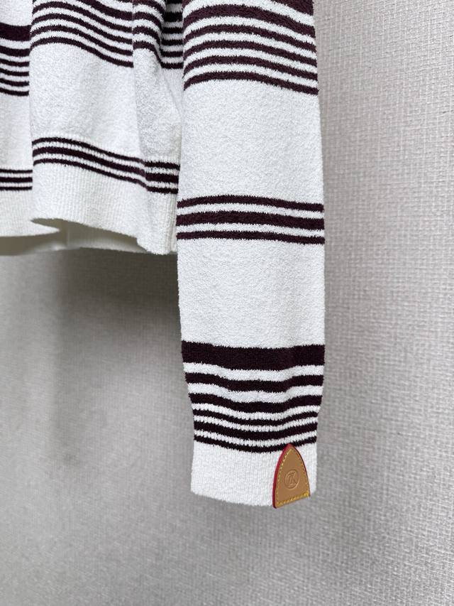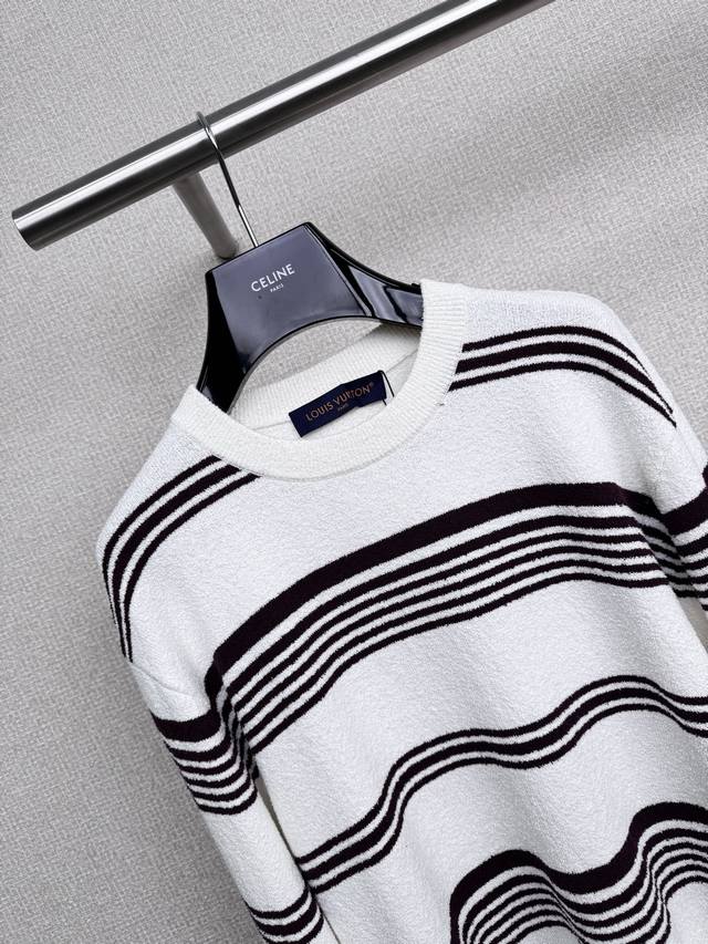 Lv2025 autumn and winter new horizontal striped leather logo knit sweater, the same style as Liu Yifei, stripes are a timeless classic, retro and fashionable, I really love it. The loose version is slimming and comfortable, especially convenient for daily wear. The white color is simple and elegant, suitable for all occasions, commuting and dating, and the small leather cuffs show attitude. This striped sweater will never go out of style. Few elements can be worn with freshness and timelessness, and they are suitable for all seasons, but stripes can achieve it. There is no need to deliberately shape the style. The natural charm of stripes is enough to wear it over and over again. It is an indispensable basic style in everyone's wardrobe. Size Sml