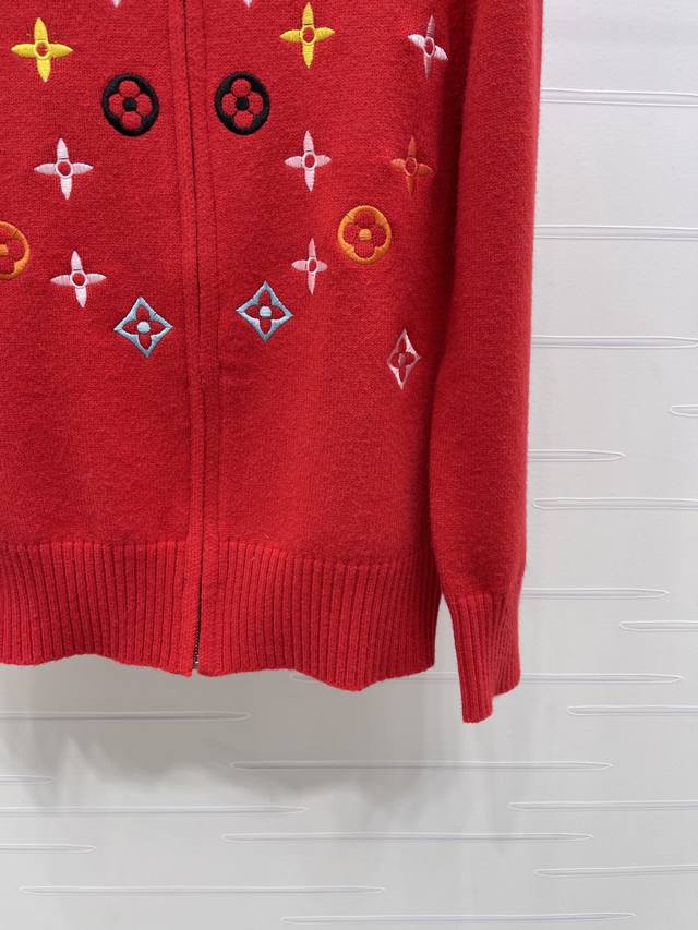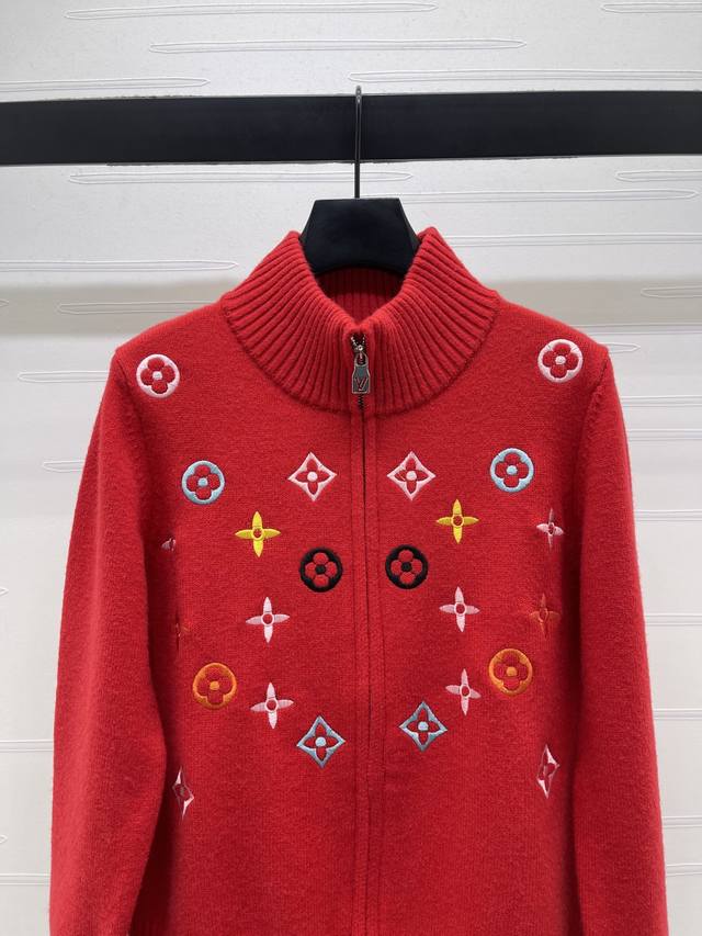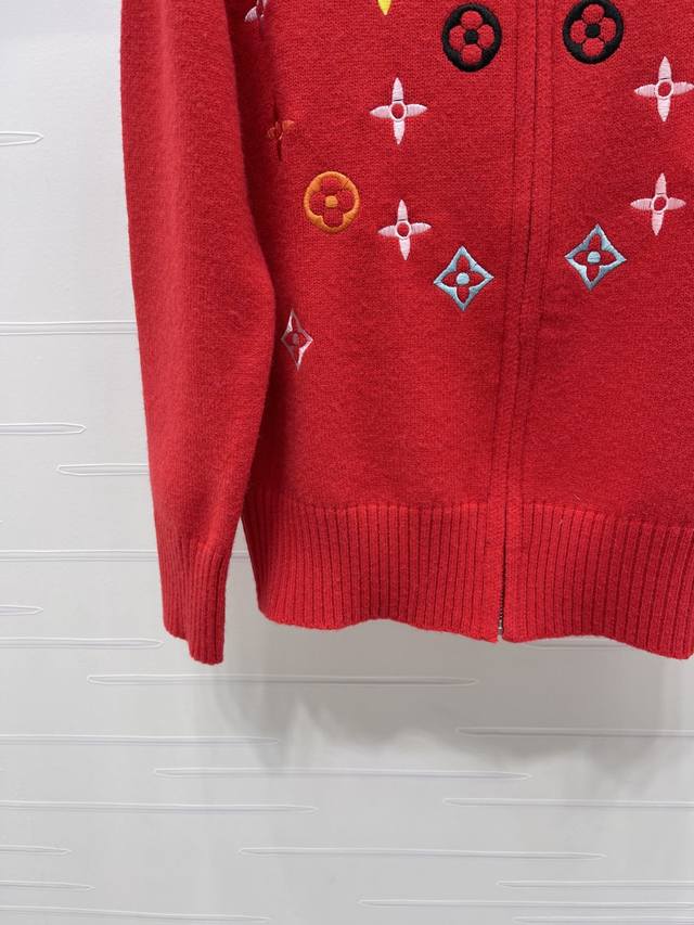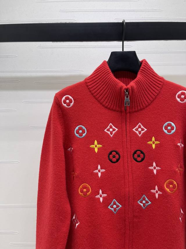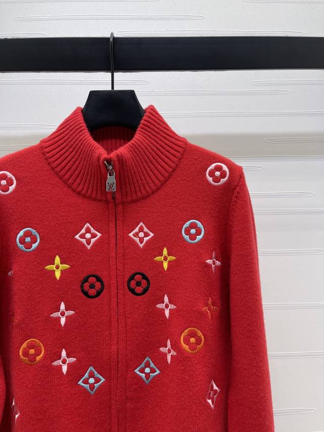 New Arrival! High-end Louis Vuitton 2025 Autumn/Winter Collection! Stand-up collar zip-up embroidered long-sleeved cardigan! Made with custom wool blend yarn, it boasts a luxurious feel and is incredibly soft and comfortable. The stand-up collar knit cardigan features ribbed trim on the neckline and cuffs, echoing the design of the hem. The all-over colorful four-leaf clover embroidered logo pattern showcases the brand's sophisticated and fashionable style. A classic, simple, and versatile piece for autumn and winter everyday wear! Available in 4 colors! Sizes SM-L3! High-quality bulk order A706B350C DDD