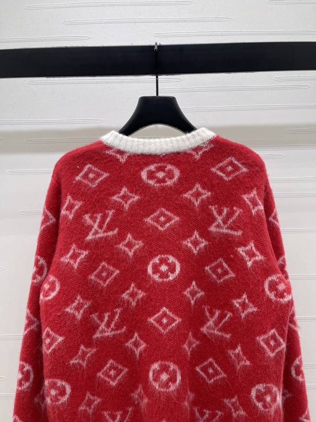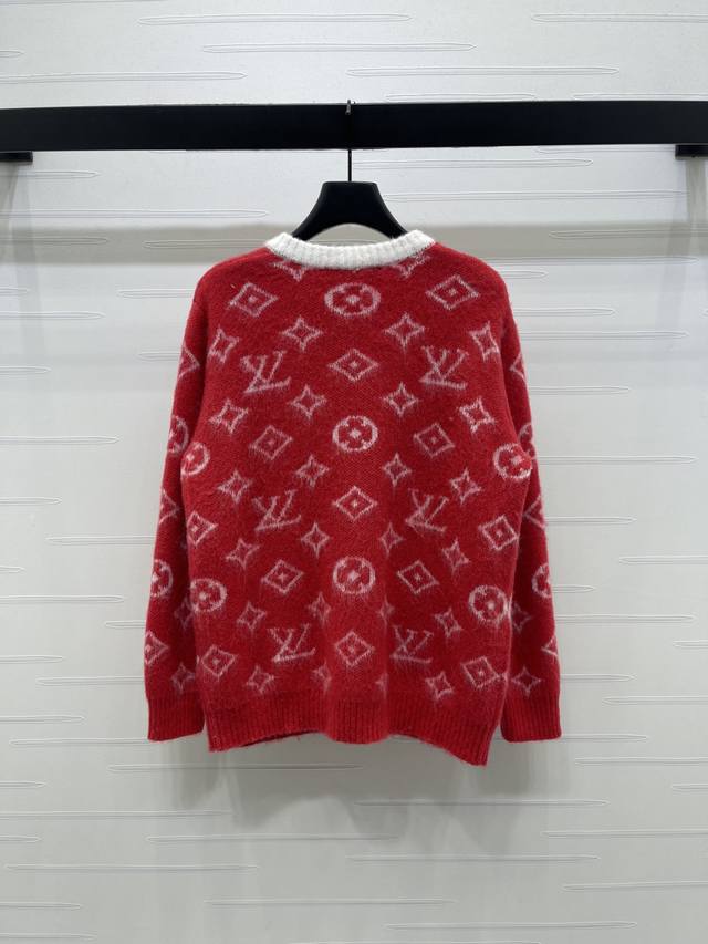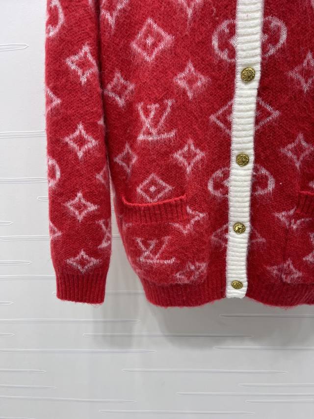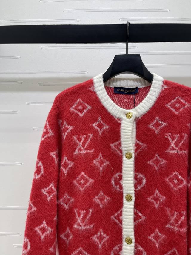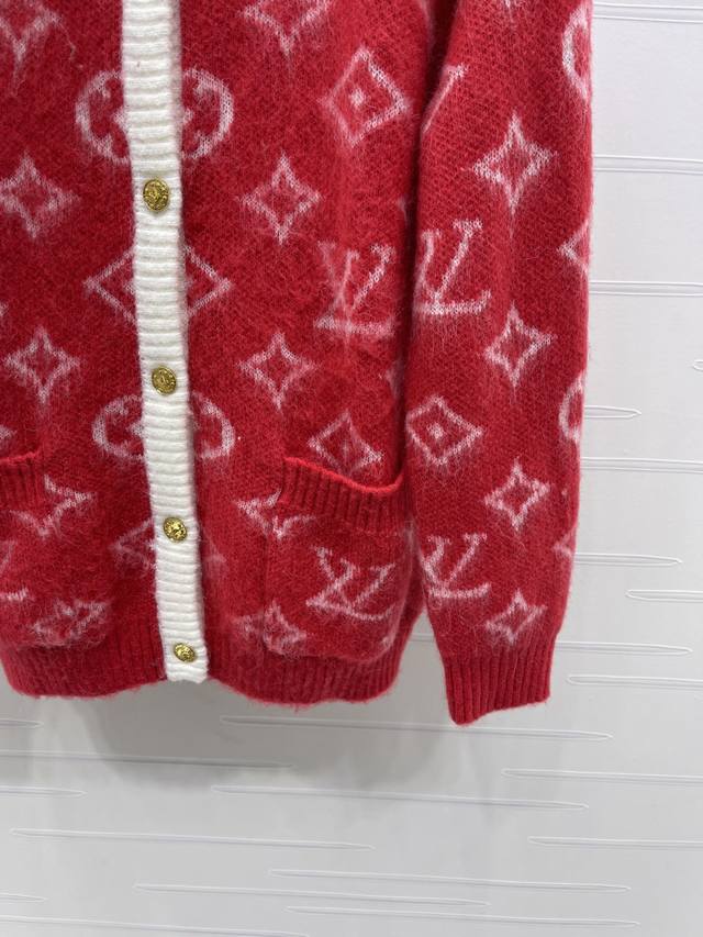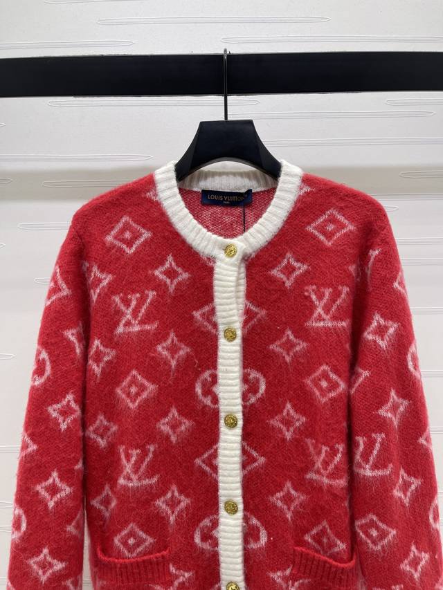 New Arrival! High-end Louis Vuitton 2026 Early Spring Collection! Round Neck Jacquard Knit Cardigan! Custom imported mohair knit material, skin-friendly, soft, and with a delicate texture. Round neck long-sleeved cardigan with contrasting trim on the neckline and cuffs that echoes the hem. The garment features a four-leaf clover logo jacquard pattern, exuding sophistication and elegance. Regular fit, a top choice for everyday stylish wear! 1 color! Sizes SM-L3! High-quality bulk order A706B430C DDD