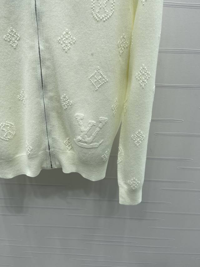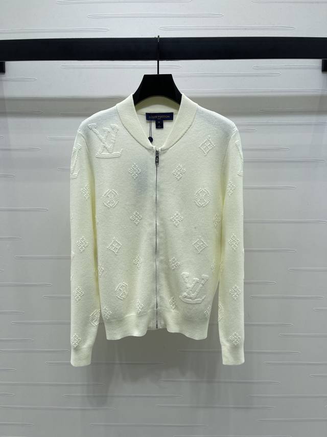 New Arrival! High-end original quality Louis Vuitton 2025 Early Autumn Collection! Stand-up collar zip-up knit long-sleeved cardigan! Made with custom imported wool blend yarn, the material is comfortable, soft, and of superior texture. The ribbed collar and cuffs feature an elegant and sophisticated design. The zip-up front features a lettered chain head, and the entire piece is decorated with a three-dimensional four-leaf clover and diamond pattern. The overall design is high-end and crisp, creating a unique and trendy style that adds a stylish touch to a classic versatile piece. Available in 3 colors! Sizes SM-L3! High-quality bulk order.