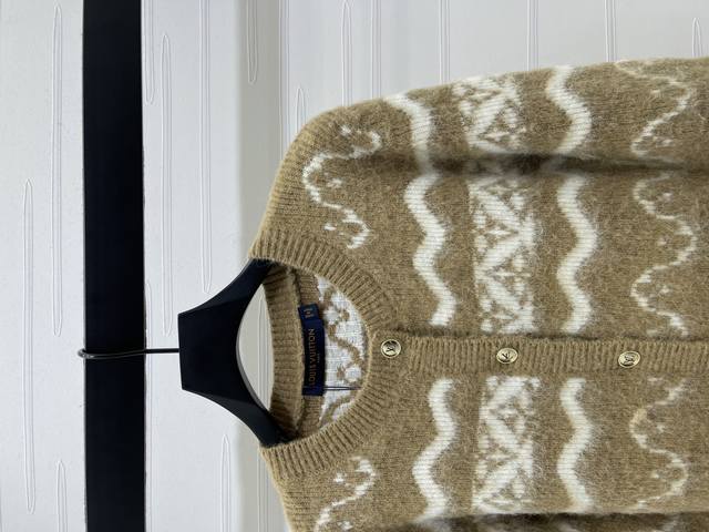 New Arrival! High-quality original Louis Vuitton 2025 Autumn/Winter collection! Heavy-duty crochet round neck long-sleeved cardigan! Made from custom wool knit material from the ski series, it boasts a luxurious feel, is incredibly soft and comfortable. The round neck and long sleeves feature ribbed trim on the neckline and cuffs that echo the hem. Adorned with Fair Isle Nordic-style crochet patterns interspersed with four-leaf clover logos, it exudes an artistic and youthful vibe, showcasing the brand's identity. The wool knit fabric is warm and comfortable. A classic fit, perfect for everyday wear in autumn and winter! Available in 2 colors! Sizes SM-L3! High-quality bulk order.