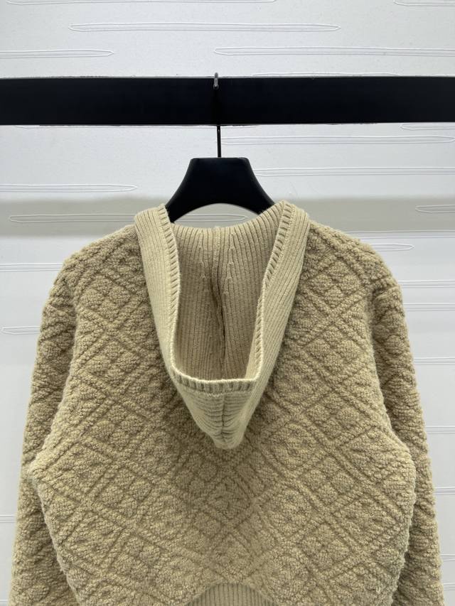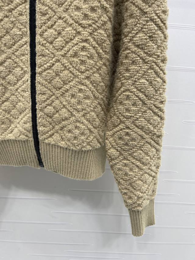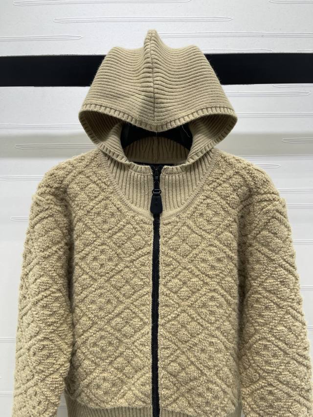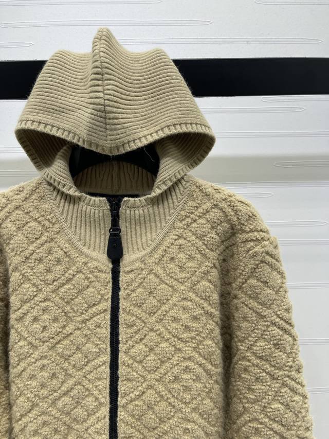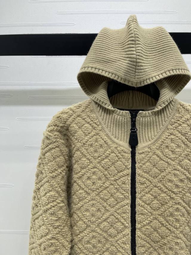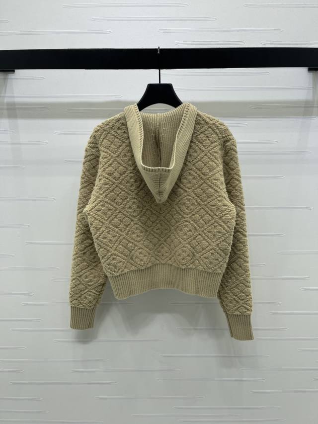 New Arrival! High-Quality Original Louis Vuitton 2025 Autumn/Winter Collection! Hooded Jacquard Knit Cardigan! Crafted from custom cashmere and wool yarns, with a jacquard finish for a three-dimensional, textured look. The cardigan features a hooded knit design, a garment-style zip-up front, and elastic ribbed trim. A perforated four-leaf clover logo button maintains a cohesive look. The overall style is sophisticated yet casual, while the all-over four-leaf clover jacquard adds a touch of modern flair, showcasing the brand's signature chic style. Available in 1 color! Sizes SM-L3! High-quality bulk order.
