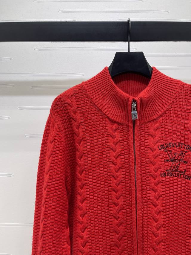 New Arrival! High-quality original Louis Vuitton 2026 Early Spring Collection! Stand-up collar zip-up knit cardigan! Crafted from custom wool yarn, it boasts a luxurious texture, is incredibly soft and comfortable. The hooded pullover sweater design features a dense knit with cable knit details for enhanced warmth and wind protection. Wide ribbed cuffs echo the hem, while embroidered lettering on the chest adds a touch of brand sophistication. The classic, structured fit is perfect for everyday wear in autumn and winter, offering a relaxed yet stylish look! Available in 3 colors! Sizes SM-L3! High-quality bulk order A706B360C DDD