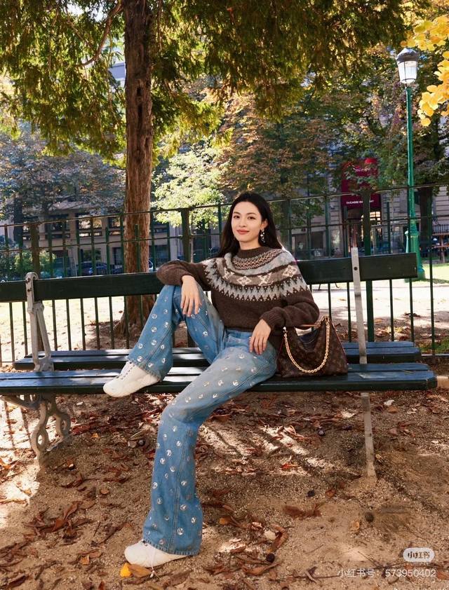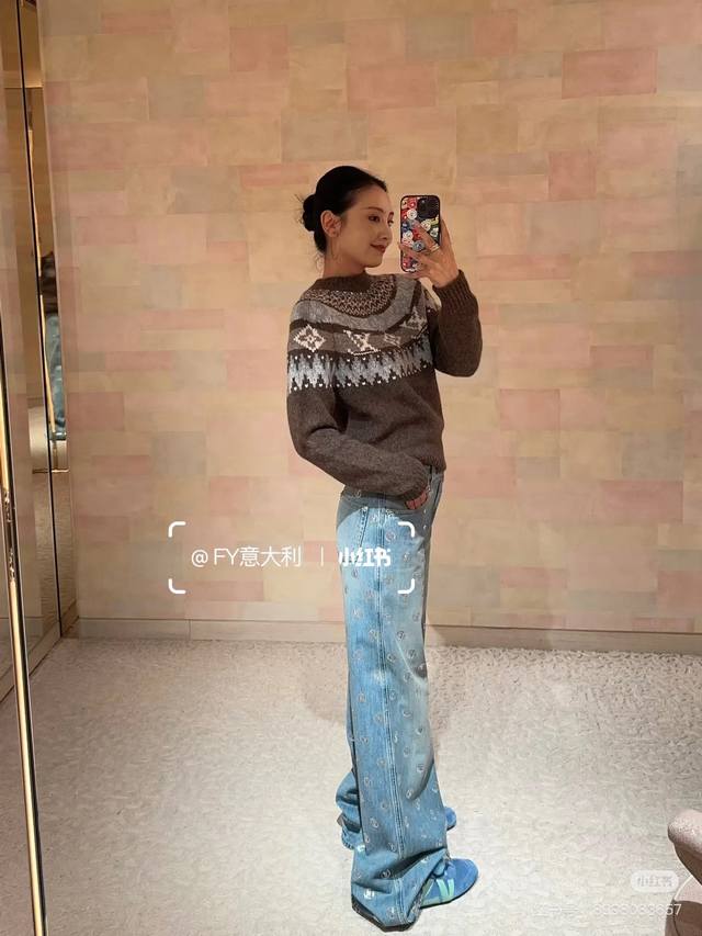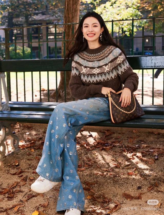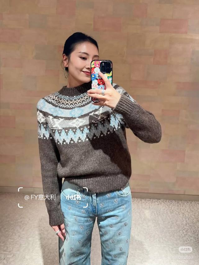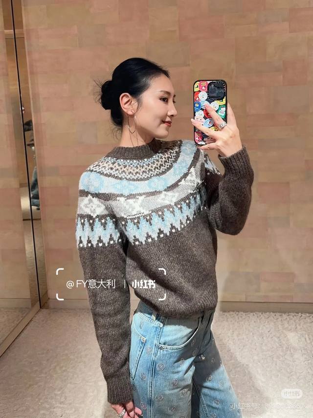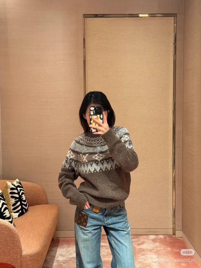New Louis Vuitton (LV) high-end custom ski series color-blocked diamond pattern monogram Lofo jacquard, stylish and versatile round neck long-sleeved pullover knit top! Gray, brown, Size M: Bust 86cm, Sleeve length (including shoulder) 66cm, Length 57cm.