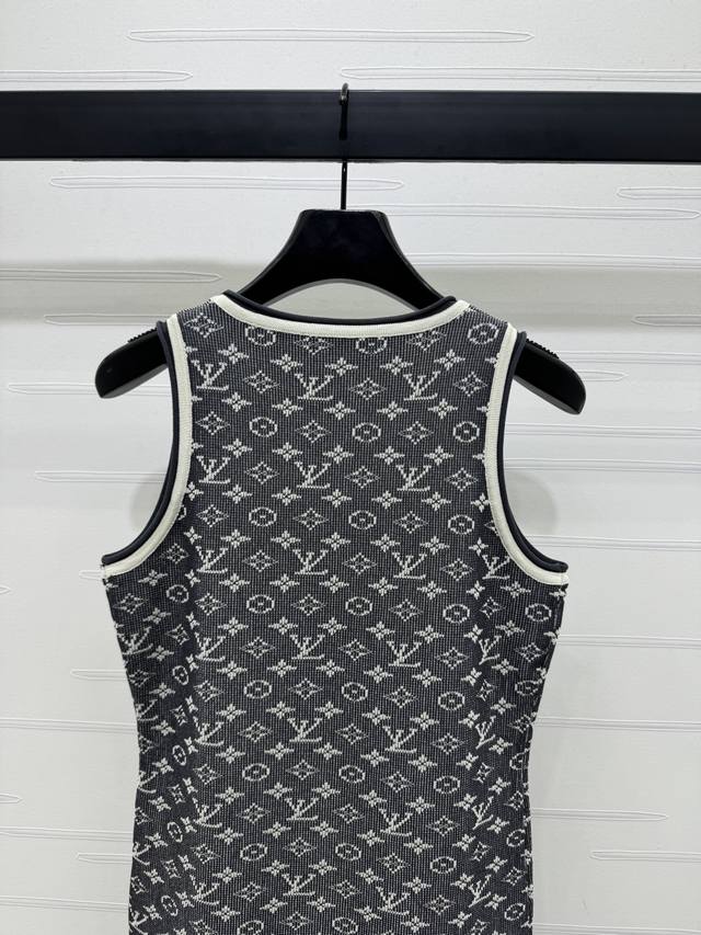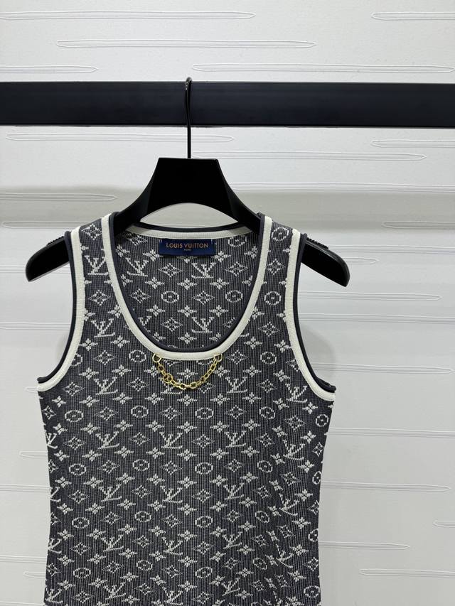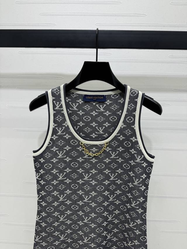 New original high-end quality Louis Vui*Ton 2025 early autumn latest series! Jacquard chain knitted vest dress! Custom wool yarn weaving texture high-end comfortable round neck knitted vest dress tailoring all over the body decorated with iconic four-leaf clover elements letter logo pattern collar embellished with logo chain eye-catching full score highlight brand personality highlight the high-end sense of wear hemming vertical pit texture design allows simple style to wear personality exquisite wear to show relaxed tone light luxury fashionable temperament can be worn alone or layered! 2 colors! SM-L3 size! High quality large goods A706B310C