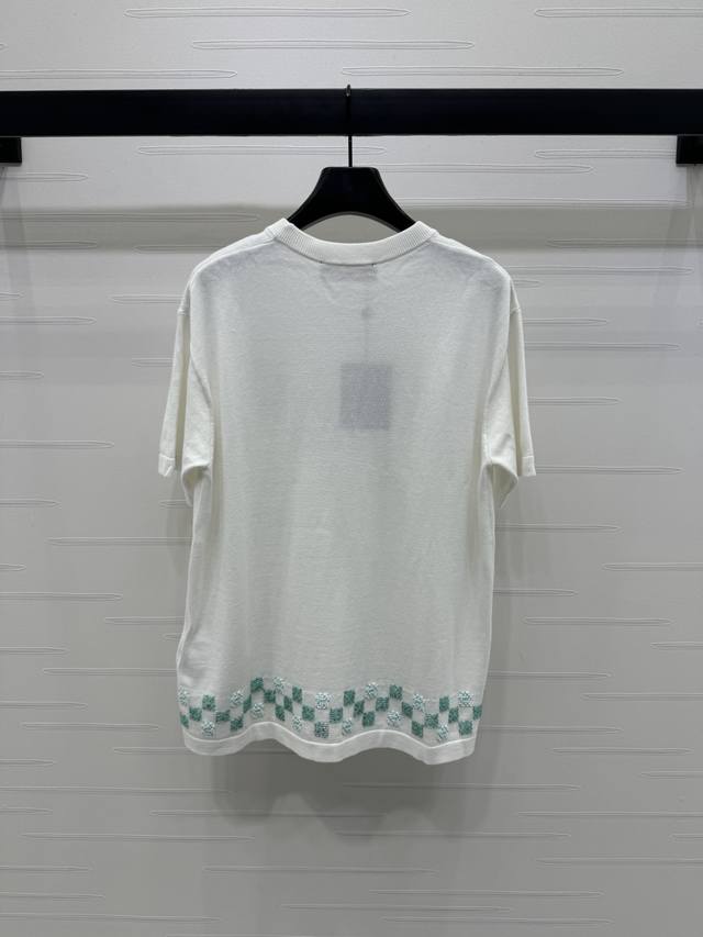 New original high-end quality Miumi*2025 spring and summer latest series! Lace knitted vest! Customized cotton yarn weaving soft skin-friendly comfortable and stylish round neck knitted vest tailoring beautifies the head and shoulder ratio and makes it look slimmer. The vertical pit texture on the whole body makes it look slimmer and more artistic. The neckline is hemmed with wavy lace and echoes the cuffs and hem. The letter logo on the chest is decorated with a strong retro style. The regular version is tolerant of the body and full of elasticity. Sweet and fashionable! 1 color! SM-L3 size! High quality large goods A706B330C