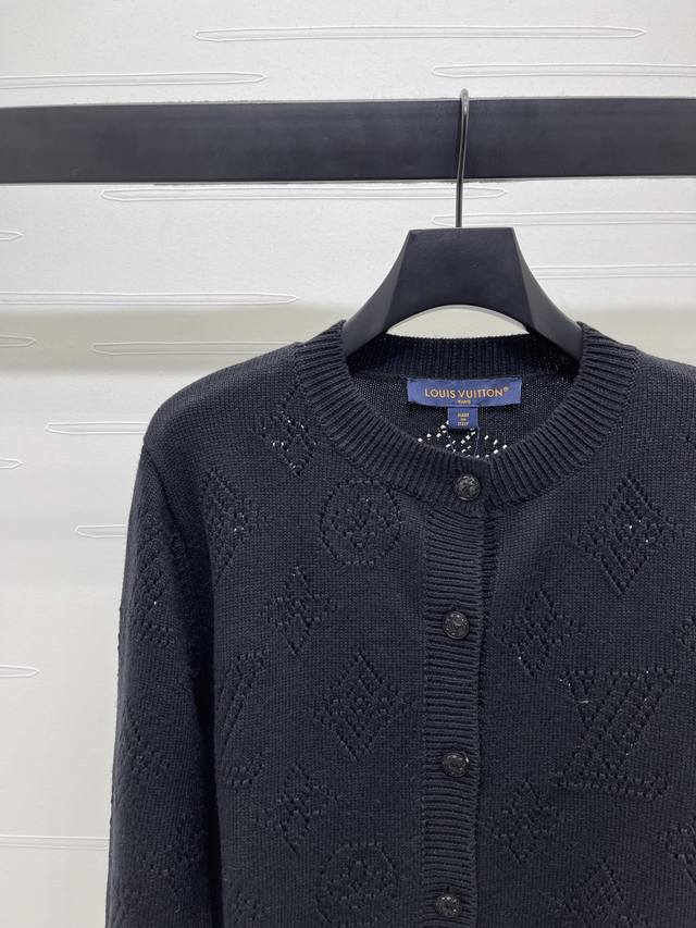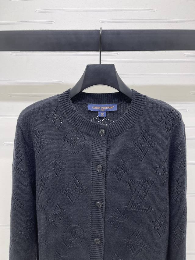New, original, high-quality Louis Vui*Ton 2025 Early Fall collection! Hollow-knit long-sleeved cardigan! Custom-woven wool yarn for a premium, comfortable, soft, round neck, straight-shoulder knit cardigan silhouette. The hollowed-out texture and logo accentuate the overall shape, creating a stylish and alluring look that exudes sophistication. Elastic hems throughout, regular fit, versatile and versatile! Available in two colors! SM-L3! High-quality, bulky stock. A706B360C