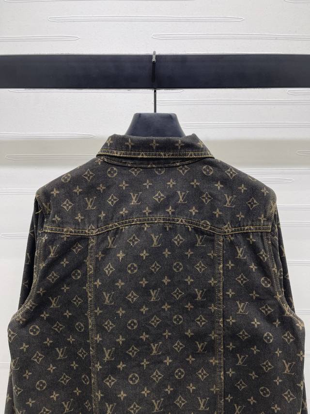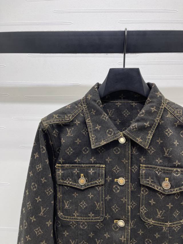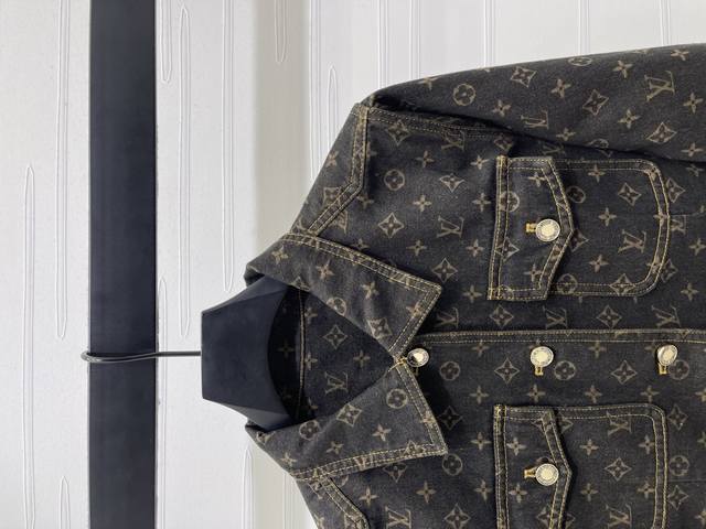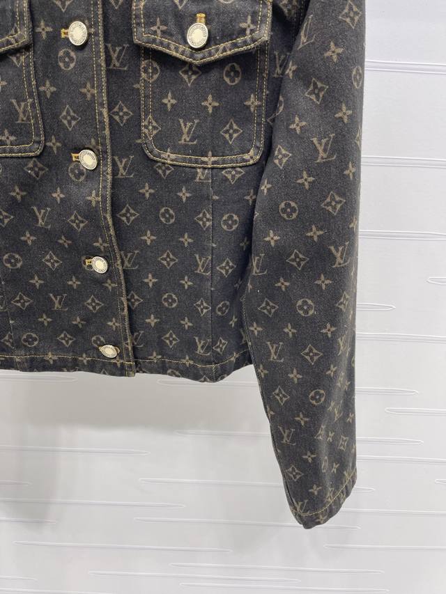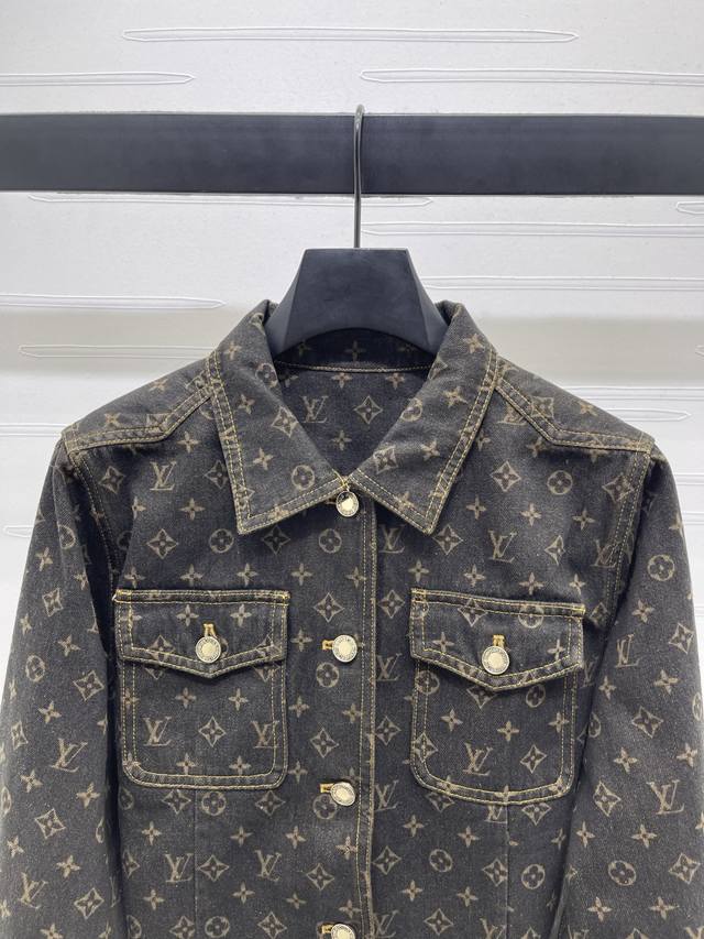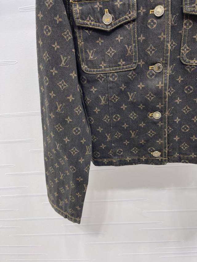 New, original, high-quality Louis Vui*Ton 2025 Early Fall collection! Jacquard monogram denim jacket! Custom-made twill denim cotton fabric, rich texture and excellent breathability. Repeated enzyme washing process, all-over four-leaf clover and monogram logos, high-quality garment quality. Regular straight-shoulder denim jacket silhouette. Symmetrical flap pockets on the chest highlight the details, highlighting the brand's luxury and presenting a casual and free-spirited style. Suitable for pants and skirts, fashionable and stylish! 1 color! Sizes SM-L3! High-quality bulk A706B520C