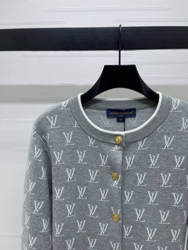 New, original, high-quality Louis Vui*Ton 2025 Early Fall collection! Round-neck monogrammed cardigan! Woven from custom wool yarn, this soft and comfortable knitted long-sleeved cardigan features contrasting neckline, cuffs, and hem. The soft, oversized monogrammed jacquard design highlights the brand's signature aesthetic, creating a youthful and alluring look. A must-have for dates and outings! Available in two colors! Sizes SM-L3! High-quality, large-volume